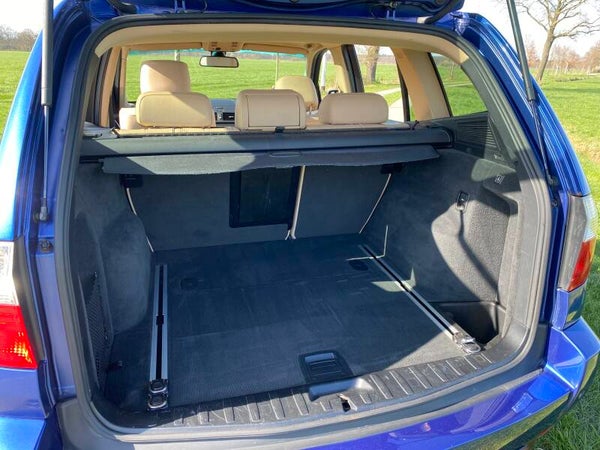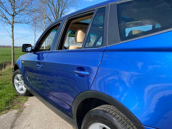 Een prachtige BMW X3 in het ''Montego Blue'' metallic uit 2007 met een beige lederen interieur.