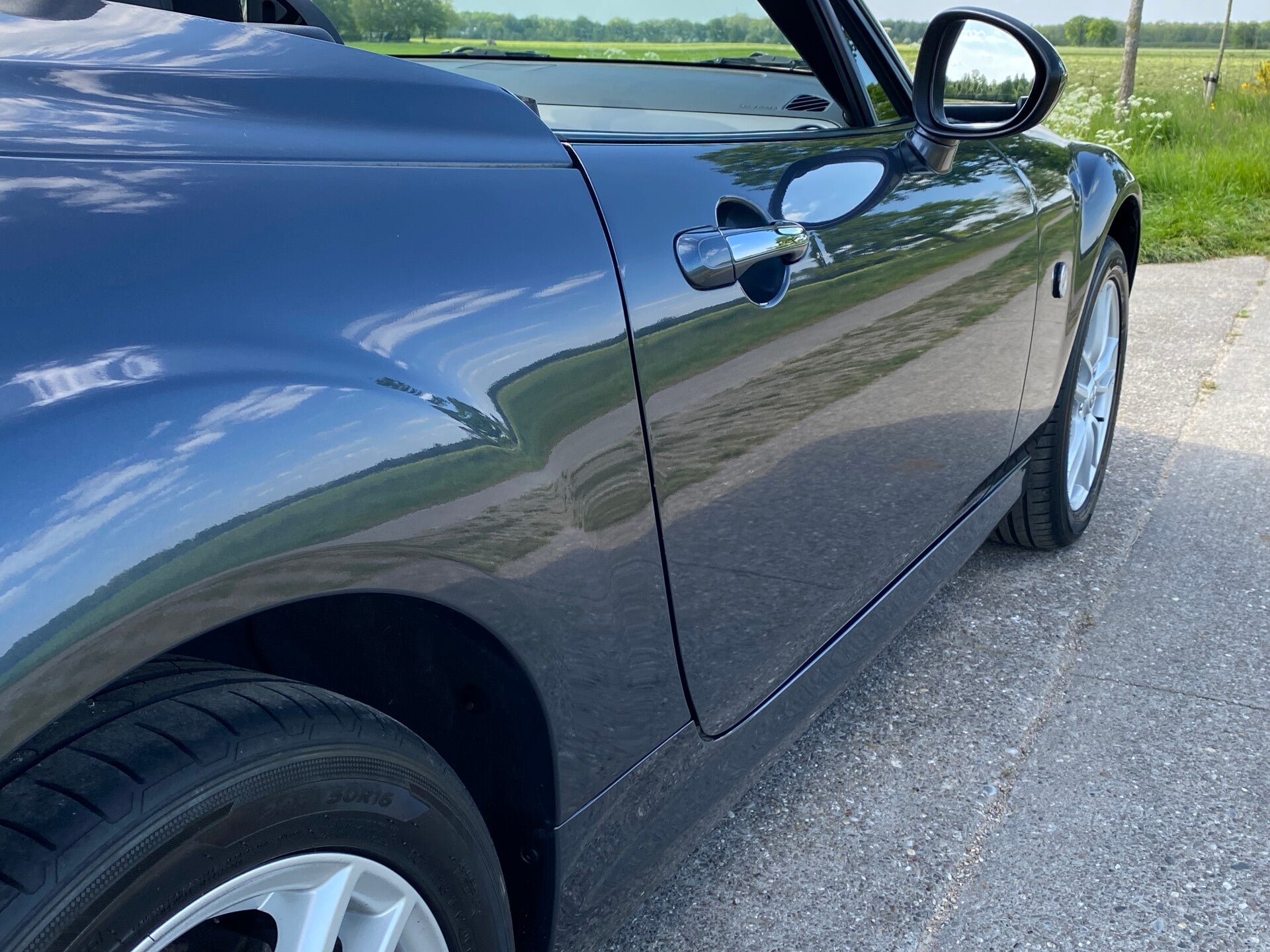 De Mazda verkeert in een zeer nette staat zowel optisch als technisch. De mooie ''Metropolitan Grey'' kleur is een lust voor het oog! De auto is luxe uitgevoerd met cruise control, een elektrische hardtop, stoelverwarming, climate control, centrale vergrendeling enz.