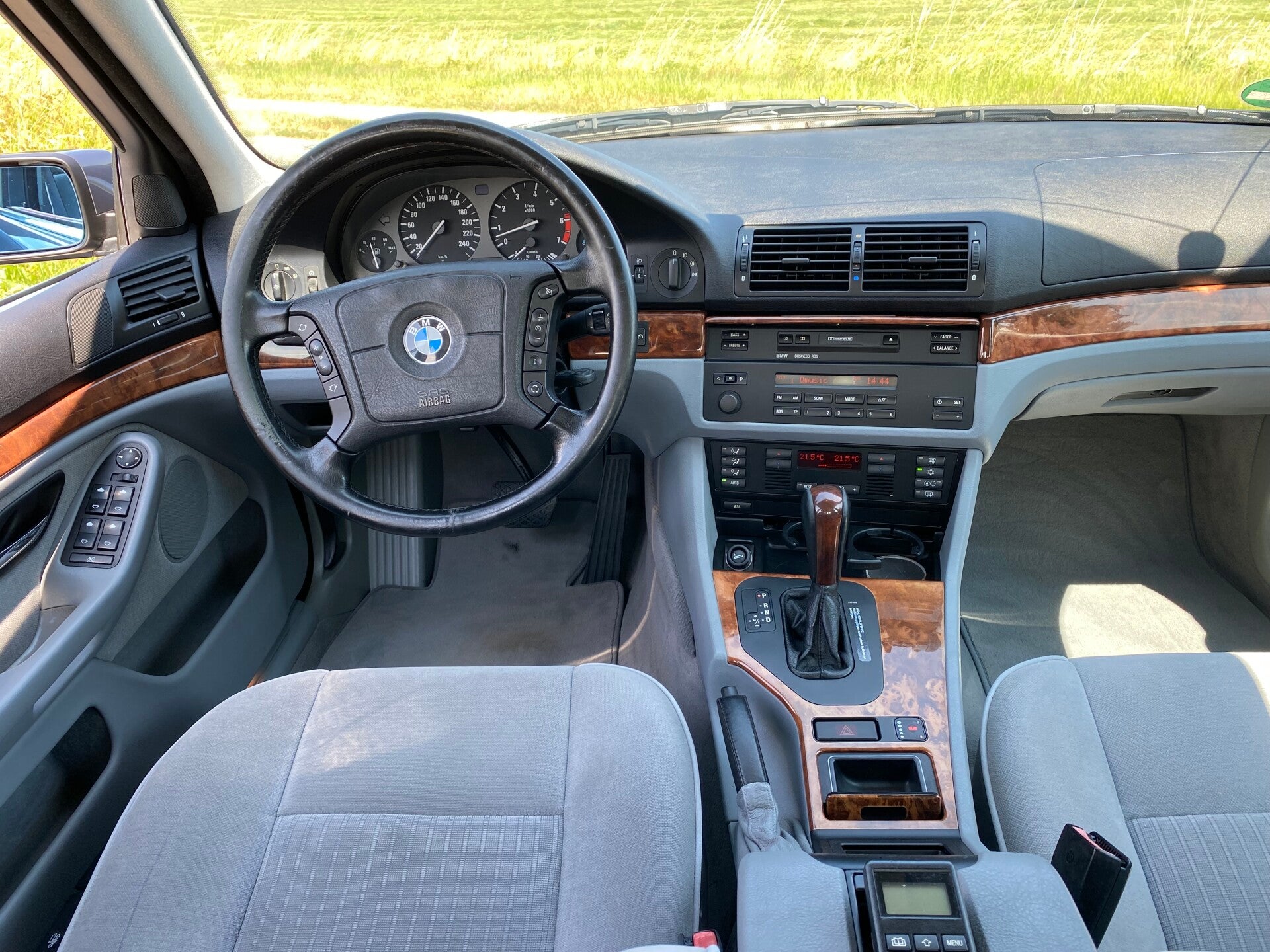 Wij hebben een prachtige BMW 535i te koop in de kleur'' Fjord-Grau'' met een grijs stoffen interieur uit 1997.