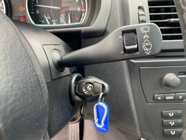 Stoere BMW X3 te koop in het ''Silber-Grau metallic'' uit 2005 met een zwart interieur. Voorzien van zwarte lederen sportstoelen en een zwarte dakhemel.