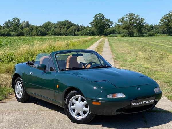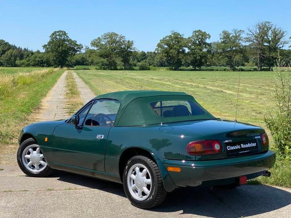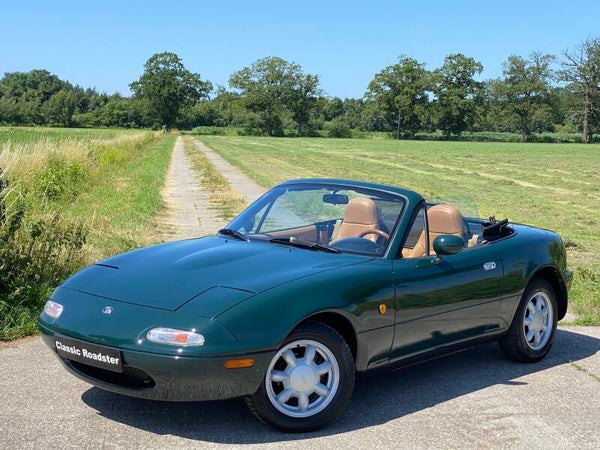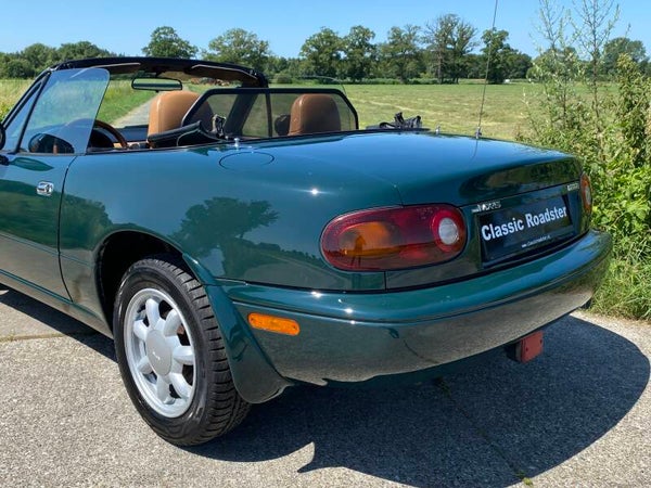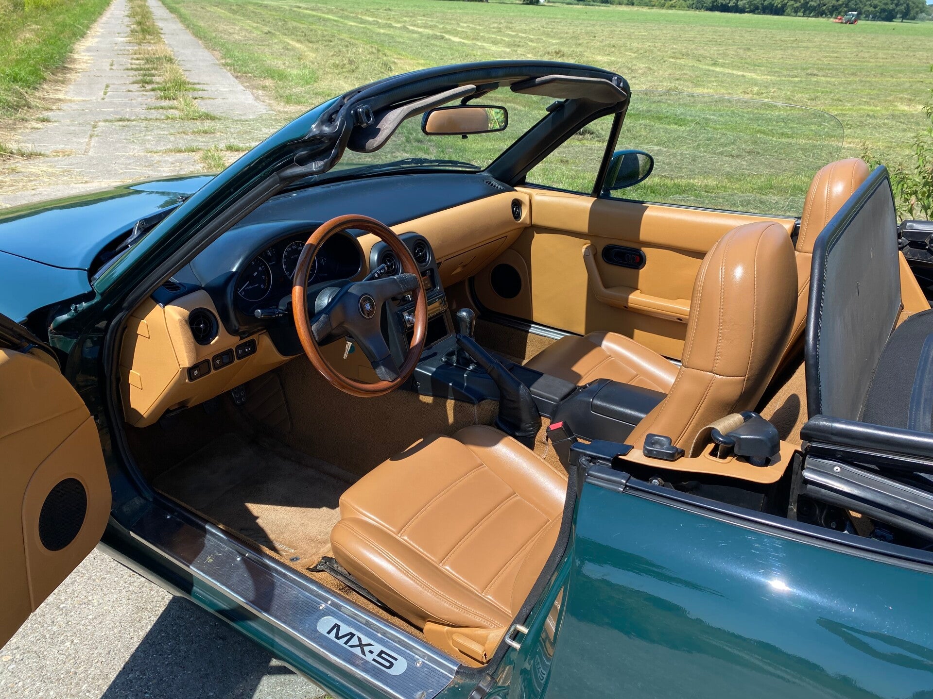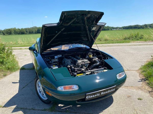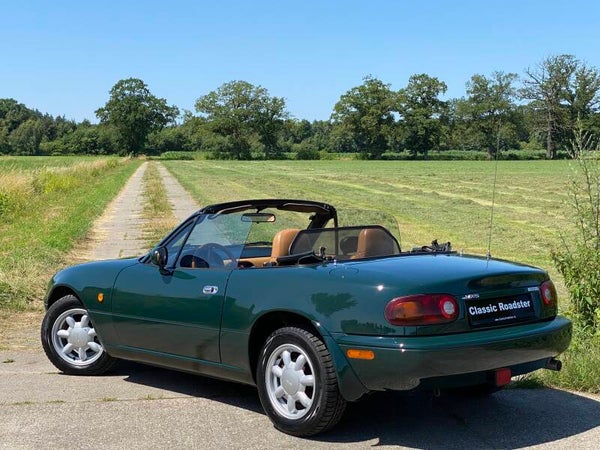 Een leuke, klassieke oer Mazda MX5 NA 1.6 te koop. In 1989 begon de productie van de best verkochte roadster ter wereld, de Mazda MX5. Deze auto is uitgevoerd in het ''British Racing Green'' met een Tan lederen interieur en een groen stoffen cabriodak.Een leuk exemplaar in een mooie klassieke kleurencombinatie die vandaag de dag niet veel meer te koop komt.