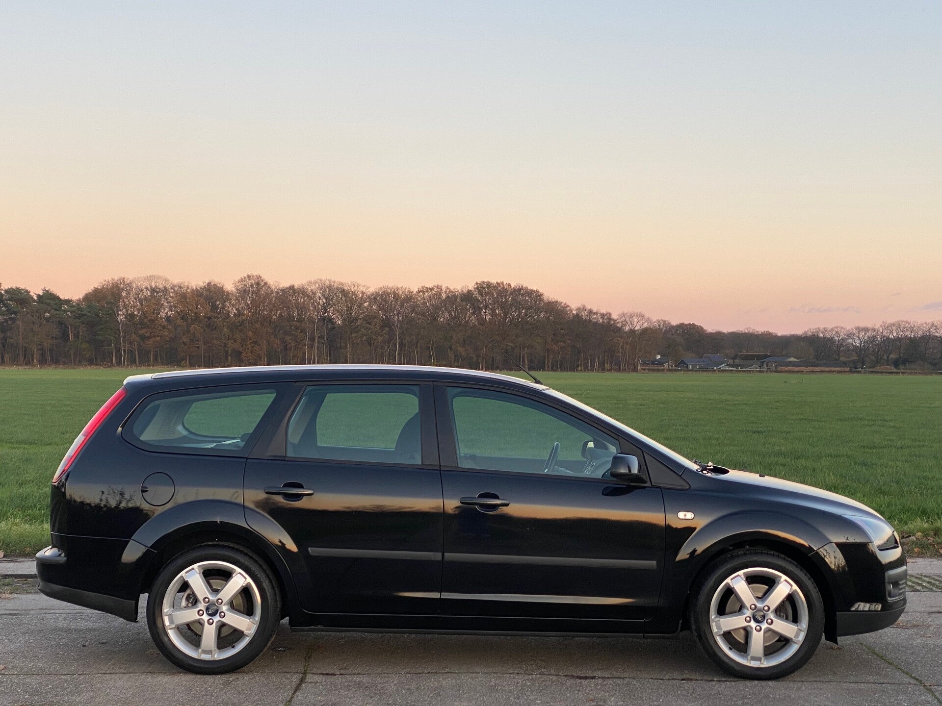 Een mooie Ford Focus Wagon in het zwart metallic uit 2006 met een zwart stoffen interieur. Een praktische gezinsauto met automaat in een super nette staat. Zeldzaam met de pittige 2.0 motor gekoppeld aan een fijn schakelende automaat.