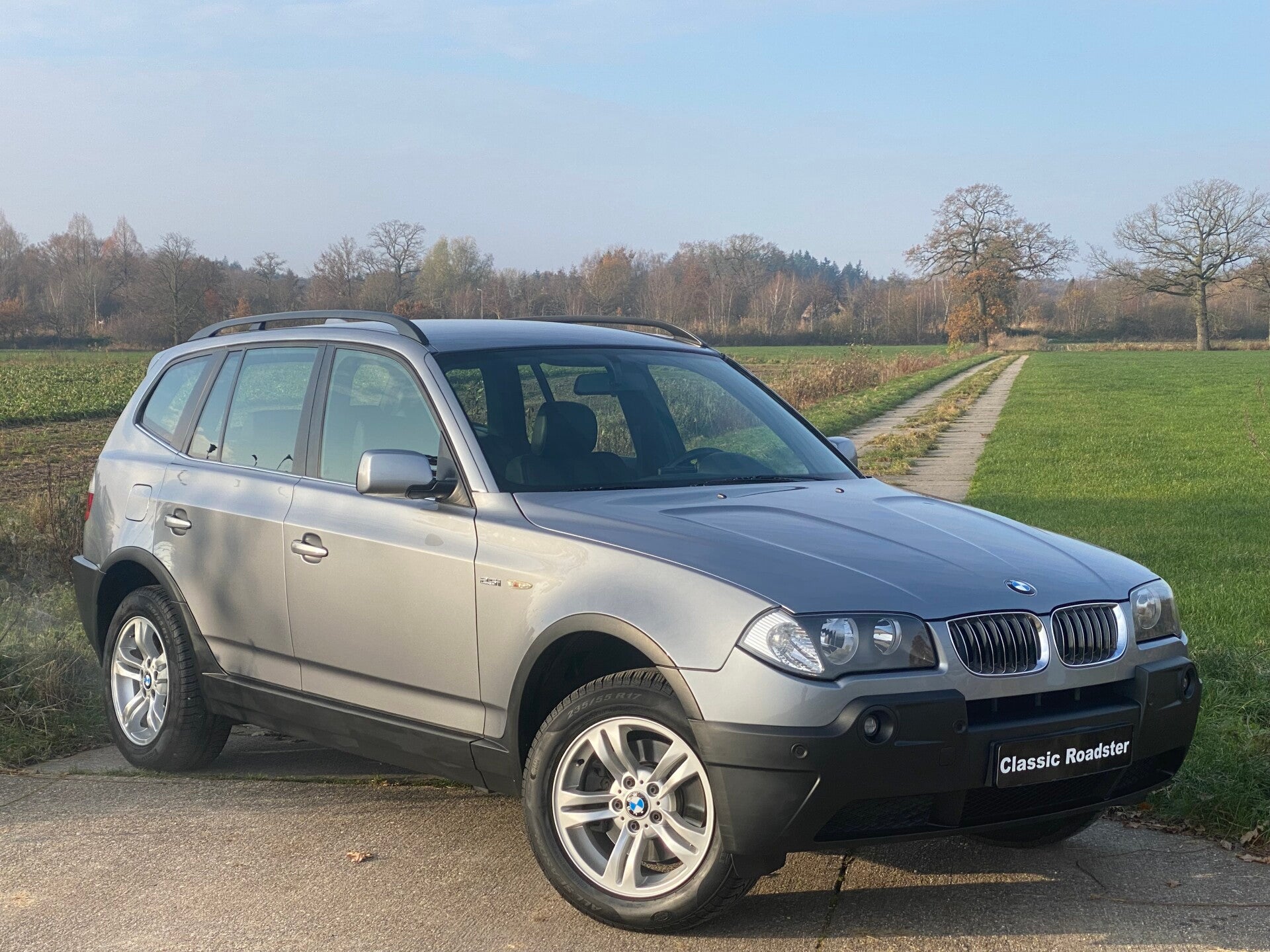 Een prachtige BMW X3 2.5i in het ''Silber-grau" metallic uit 2005 met een zwart lederen interieur inclusief sportstoelen in een zeer nette staat.