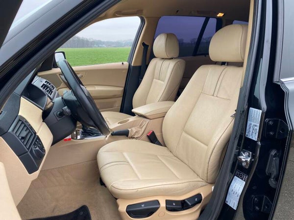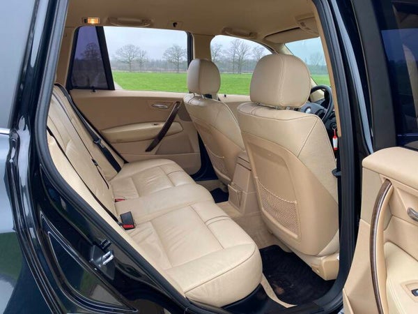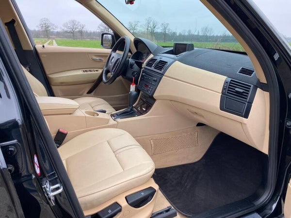 Stoere BMW X3 te koop in de kleur ''Black-Sapphire'' metallic uit 2005 met het interieur Leer ''Ambiente''/sandbeige hell.