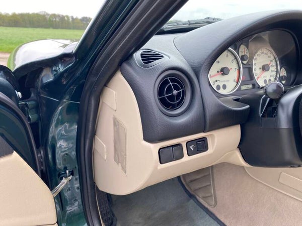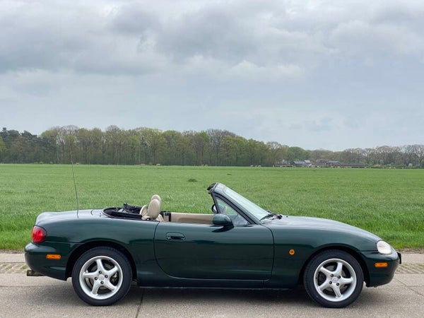 Deze groene MX5 is 29 maart 2000 afgeleverd aan zijn eerste Duitse eigenaar. Al in 2004 is de auto naar Nederland gekomen met 64.000 kilometer op de teller. De resterende 100.000 kilometer zijn de afgelopen 20 jaar gereden. De laatste eigenaar heeft de auto 10 jaar in bezit gehad en keurig onderhouden.