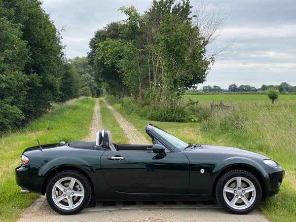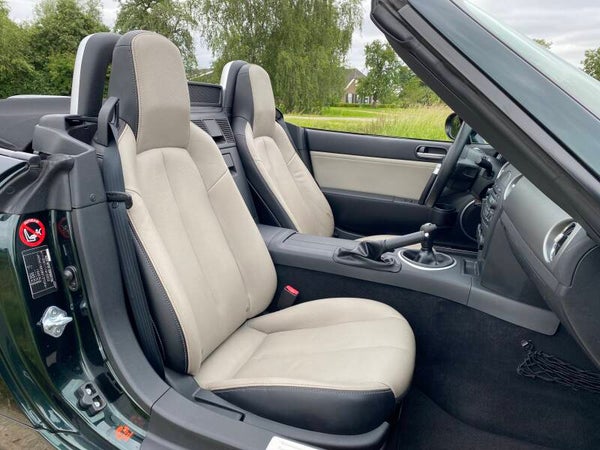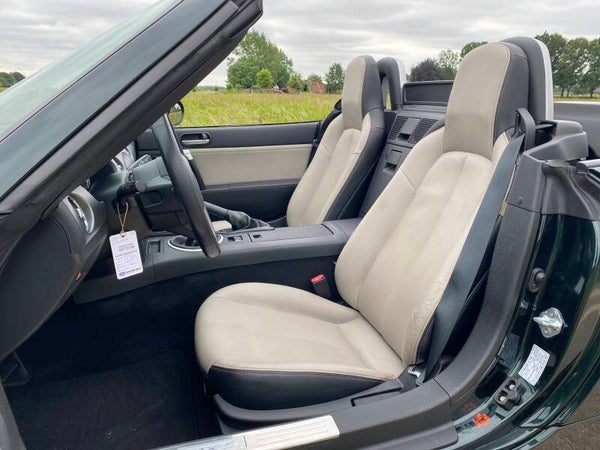 Deze Mazda MX5 NC is uitgerust met de prachtige kleurencombinatie ''Highland Green Metallic" met een beige lederen interieur met stoelverwarming. De auto beschikt onder andere over climate control, bluetooth, lichtmetalen velgen, enzovoorts.