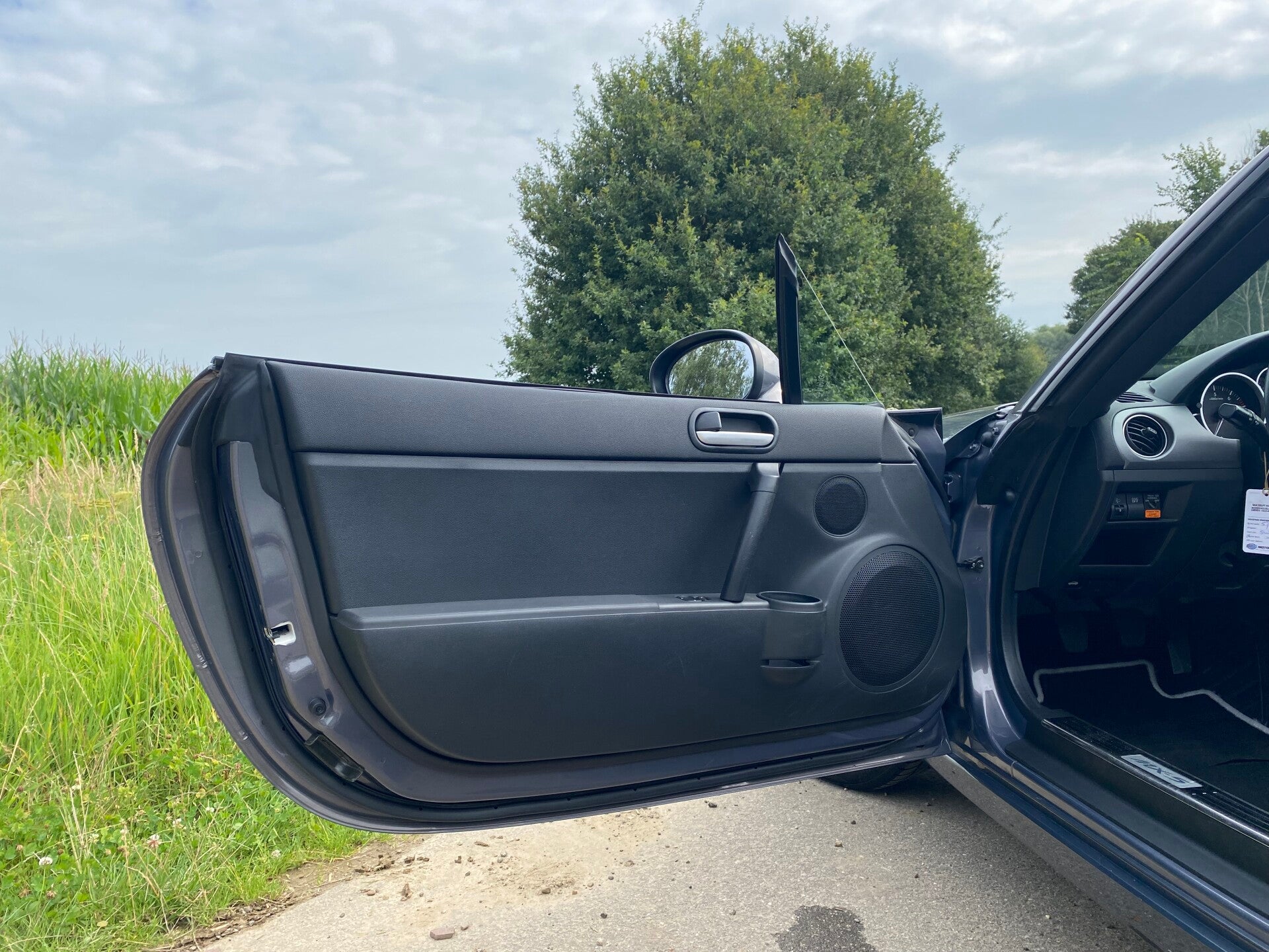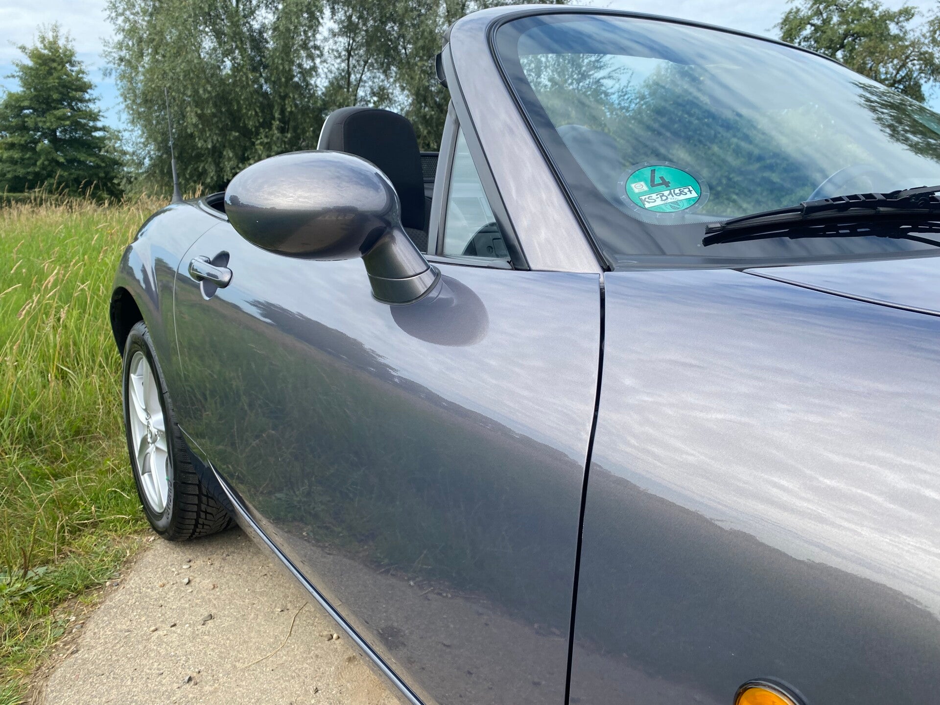Dit ''Galaxy Grey'' exemplaar is nieuw geleverd in Duitsland door Mazda dealer ''Autohaus Weber GmbH'' te Herne. De mx5 heeft in Duitsland 2 eigenaren gehad die de auto als zomerauto hebben gebruikt. De laatste eigenaar heeft de auto vanaf 2016 in bezit gehad. Er is nooit veel met deze maagdelijke Mazda gereden en dat voel en zie je wanneer je met deze auto op pad gaat. Ondanks het weinige gebruik is er op onderhoud niet bezuinigd en dat maakt het een zeer interessante auto voor de volgende liefhebber. Want waar vind je nou nog een 18 jaar oude mx5 met 42.000 echte kilometers?
