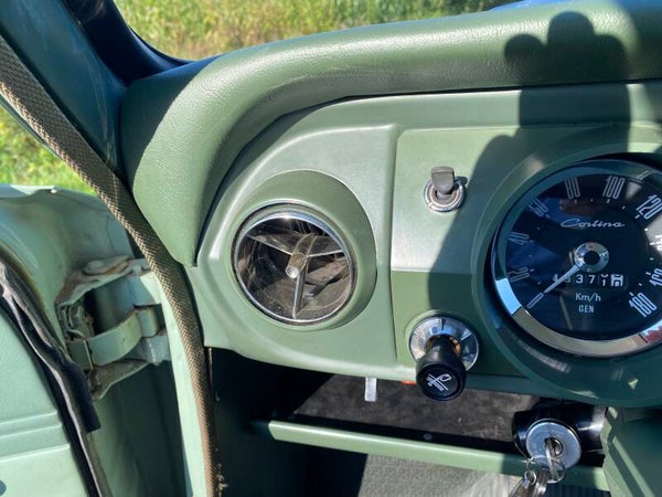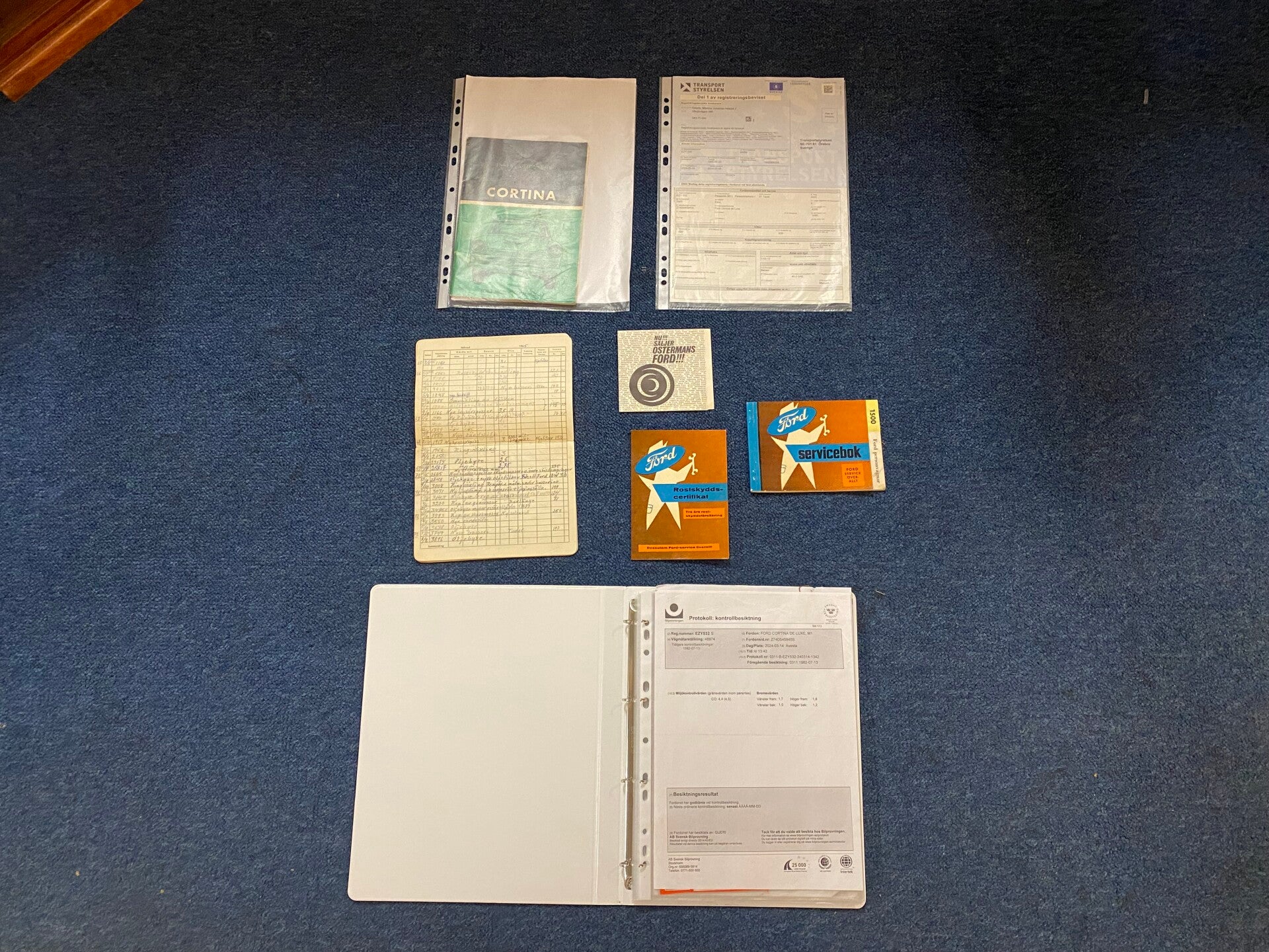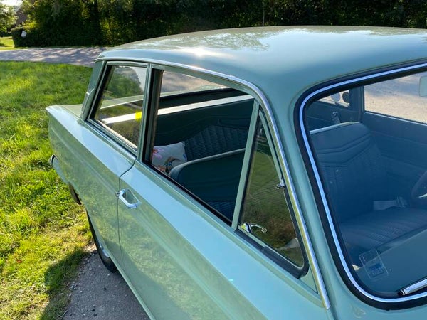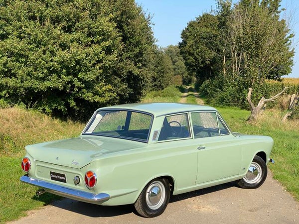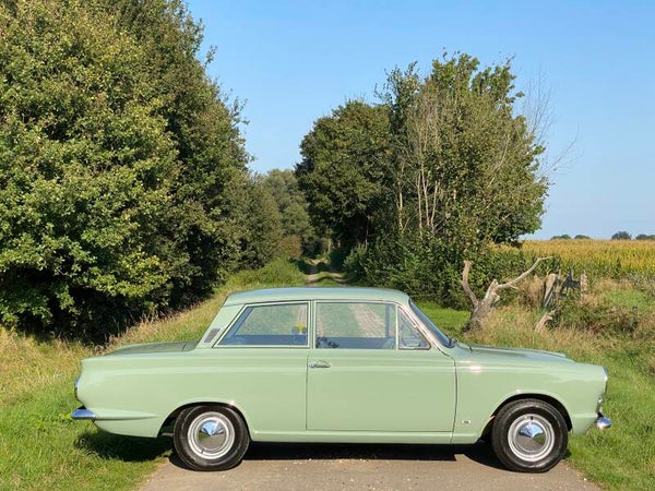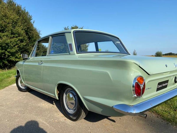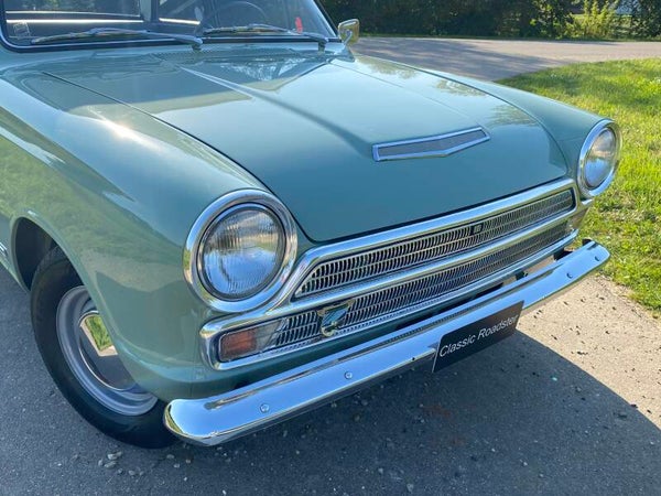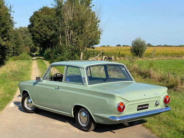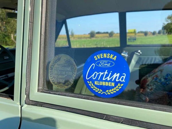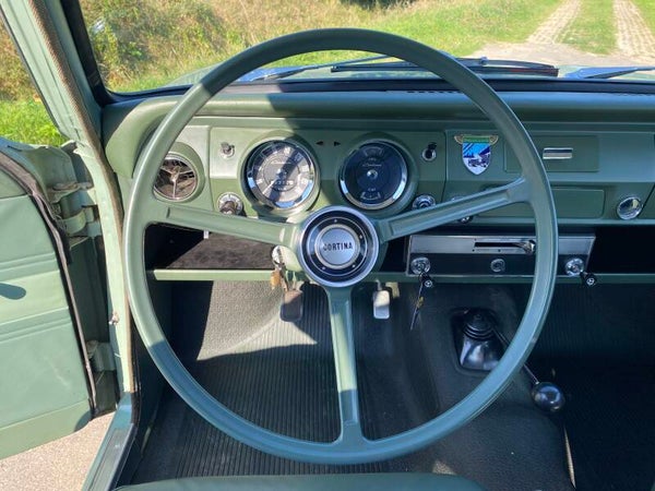 Deze prachtige Ford Cortina is in 1965 nieuw gekocht door de heer Ekelund uit Zweden en geleverd door Ford dealer ''Hans Osterman''. De auto is altijd in dezelfde Zweedse familie gebleven en na het overlijden van meneer Ekelund is de Ford overgenomen door zijn kleinzoon. Een bijzonder en uniek detail is het Shell boekje met handgeschreven noties over het onderhoud en reparaties in de loop der jaren. Hieruit maken wij een kloppende kilometerstand en een perfect onderhouden Cortina op. In 1992 zijn er enkele laswerkzaamheden uitgevoerd en is de auto opnieuw gespoten.