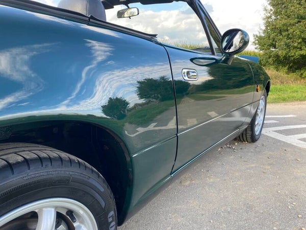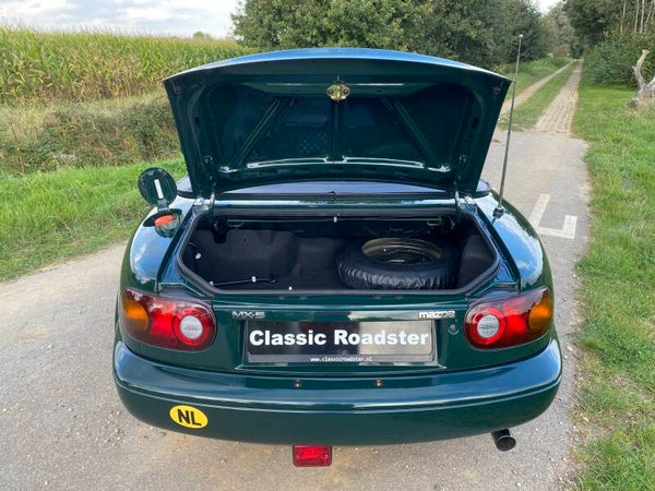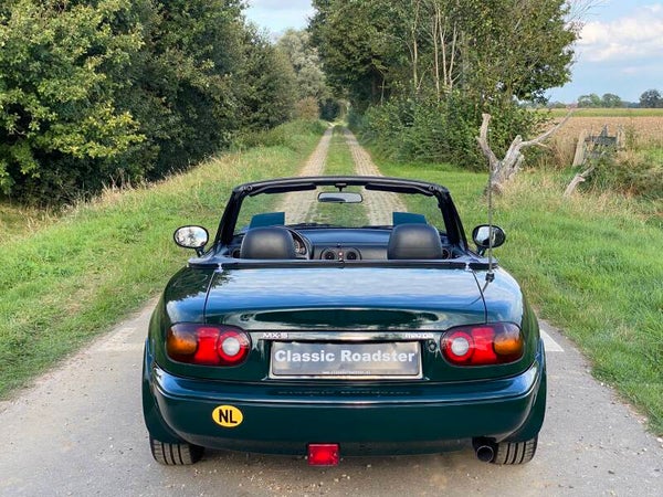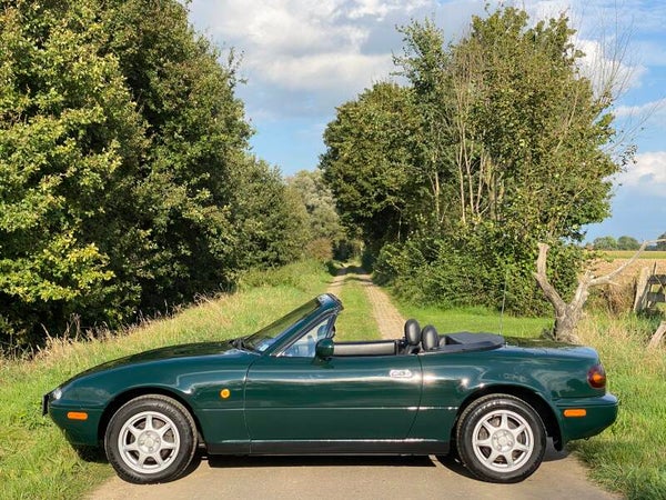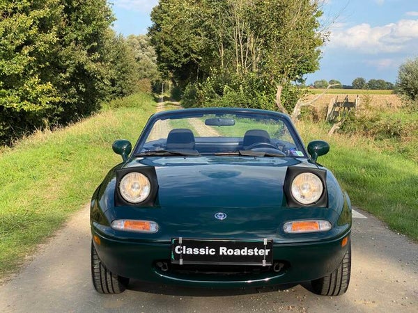 Een mooie, klassieke Mazda MX5 NA 1.8 te koop die in een perfecte staat verkeert. In 1989 begon de productie van de best verkochte roadster ter wereld. Deze auto is uitgevoerd in het British Racing Green met een zwart stoffen interieur en een zwart vinyl/PVC cabriodak.