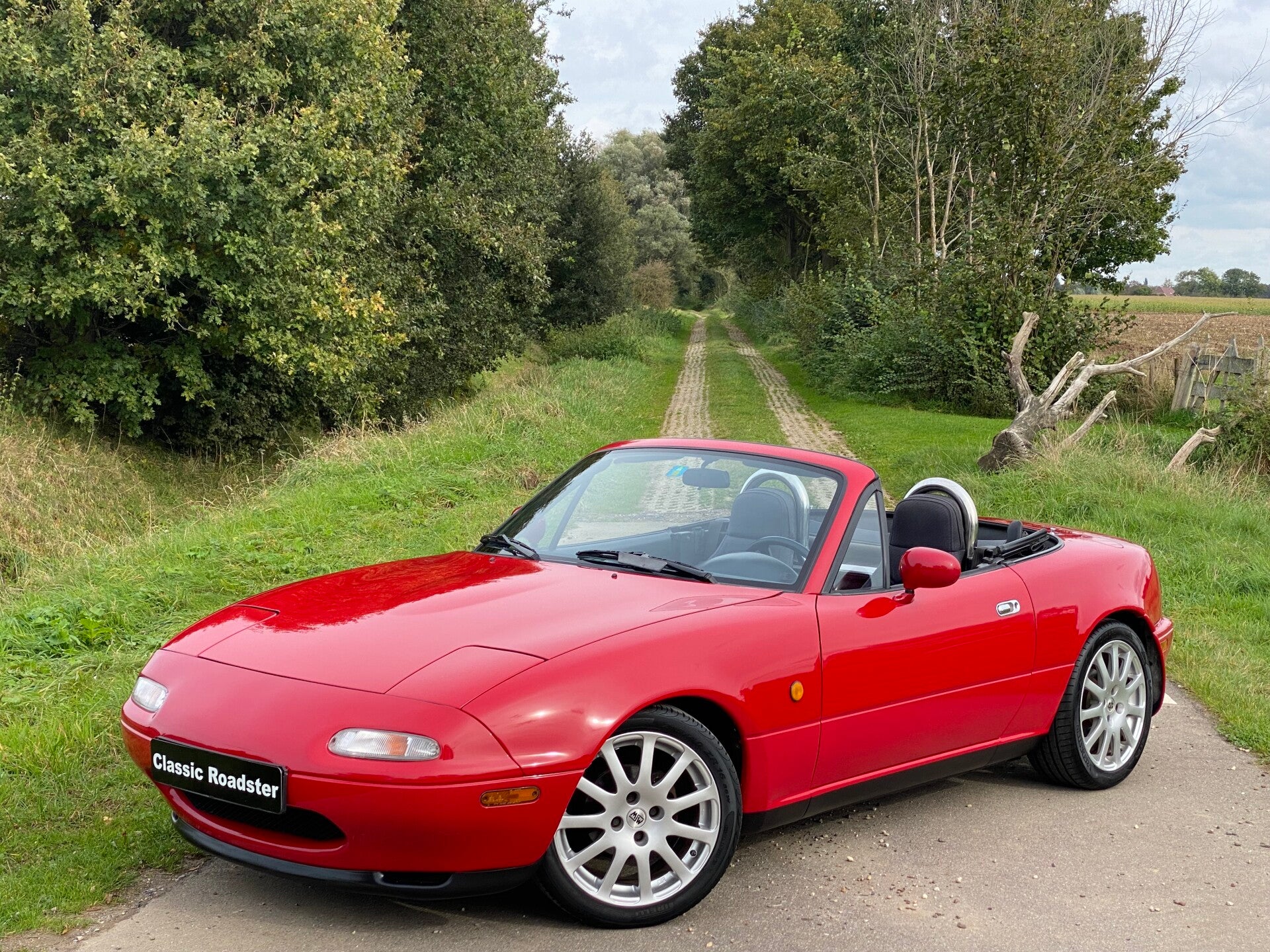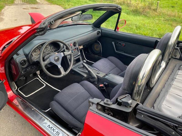 Een mooie, klassieke oer Mazda MX5 NA 1.6 te koop. In 1989 begon de productie van de best verkochte roadster ter wereld. Deze auto is uitgevoerd in het Classic Red (de MX5 kleur!) met een zwart stoffen interieur en een zwart PVC cabriodak.