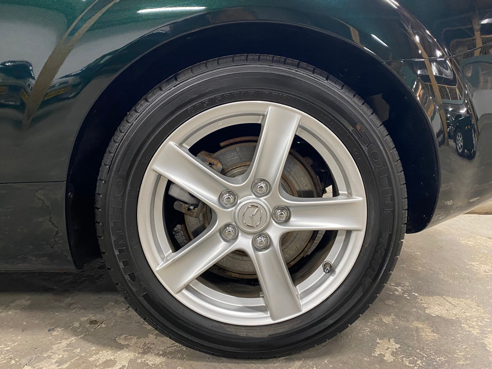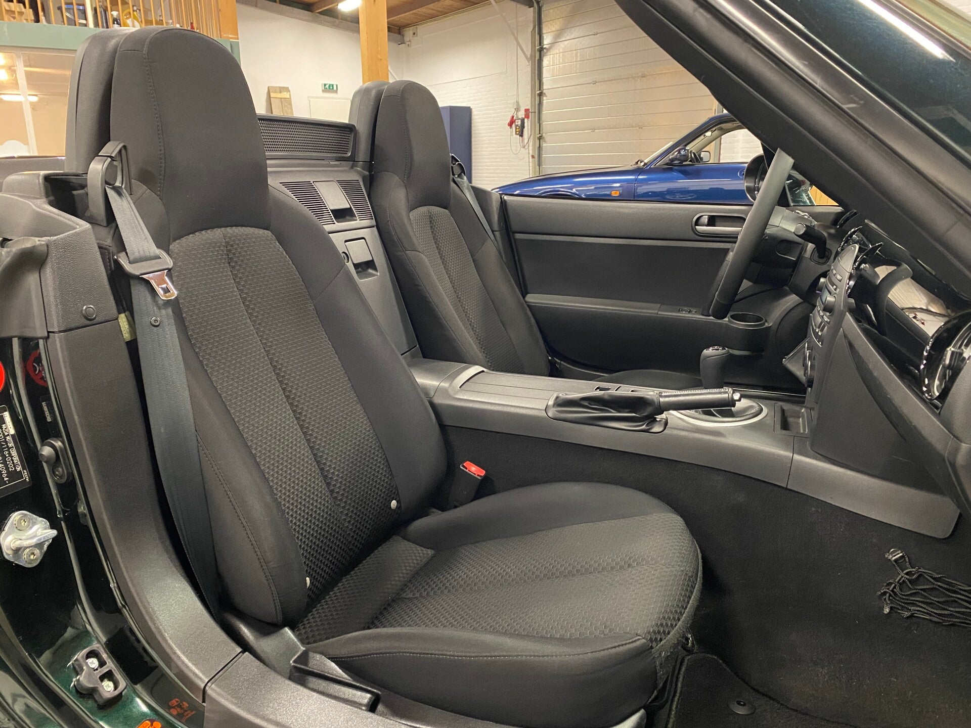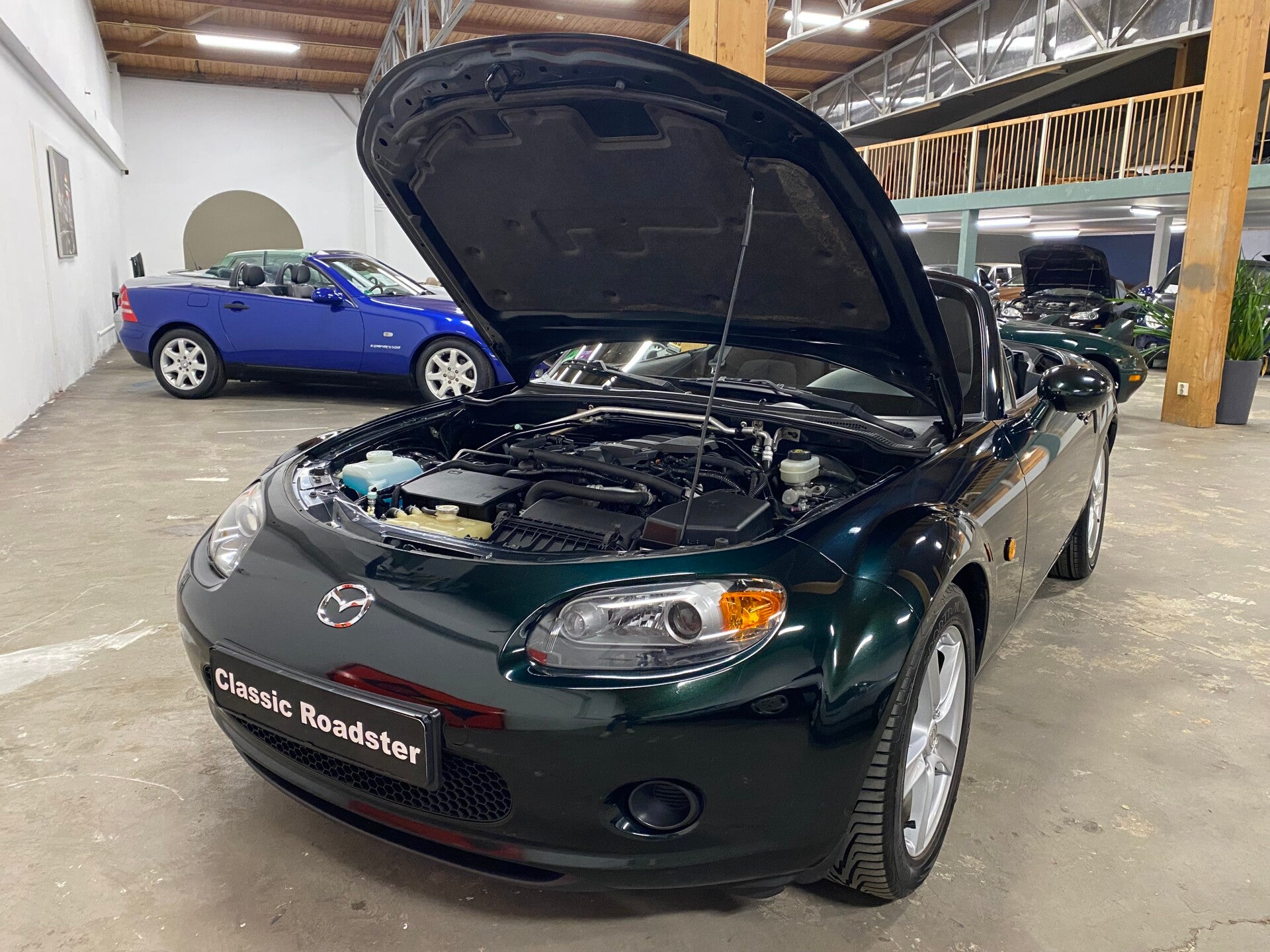 Dit ''Highland Green'' exemplaar is nieuw geleverd in Duitsland door Mazda dealer ''Autohaus Paul Kramer'' te Neuwied aan herr Bastian. De groene cabriolet is altijd als zomer auto gebruikt en stond droog in de garage gestald. En onderhoud is elk jaar netjes uitgevoerd door de plaatselijke Mazda dealer. Hier hebben wij een volledige uitdraai van met de facturen bij. In 2022 is de Mazda overgeschreven op naam van de zoon van de eerste eigenaar. Wegens het weinige gebruik moest de MX5 worden verkocht en hebben wij de auto kunnen kopen.