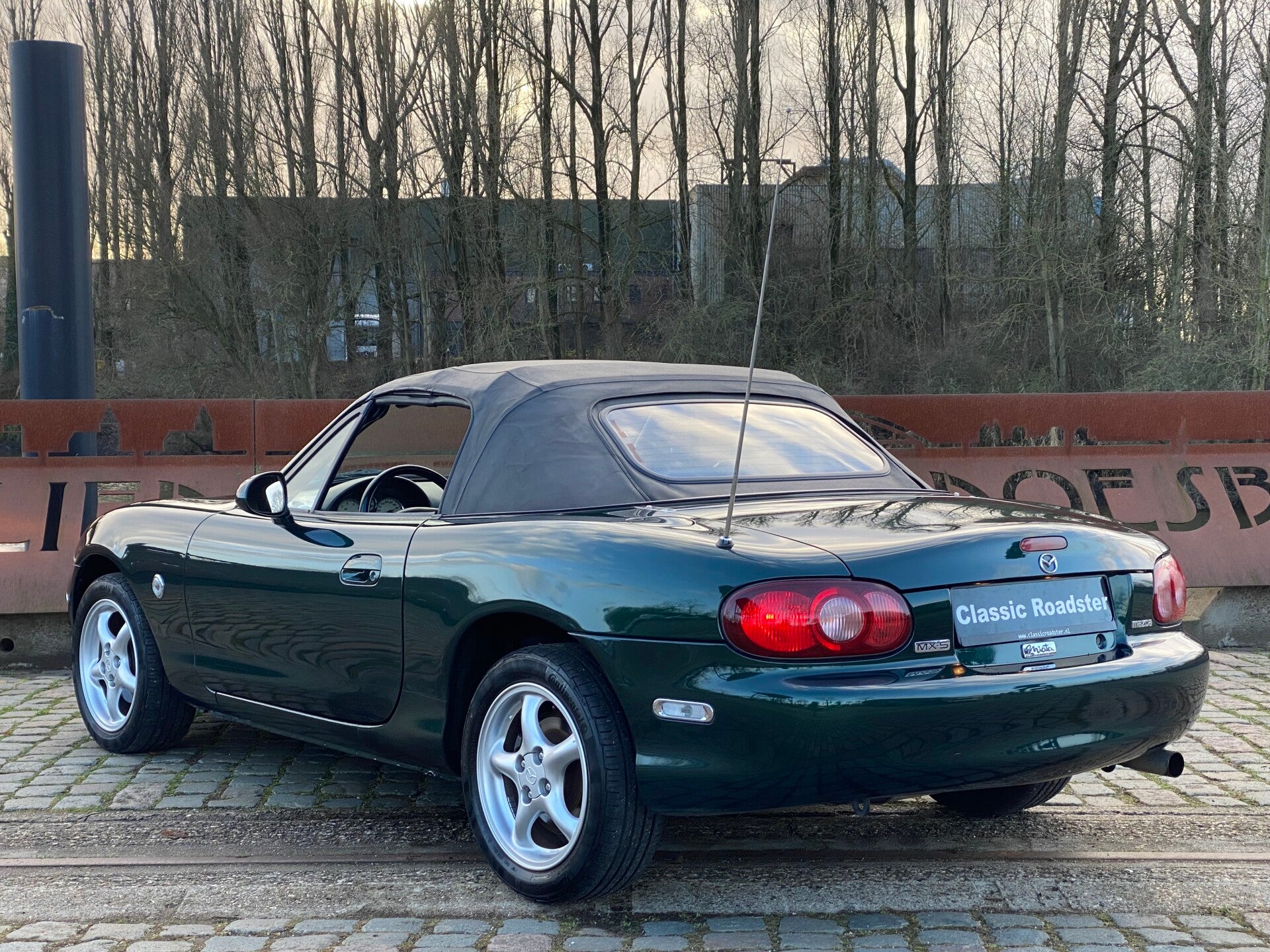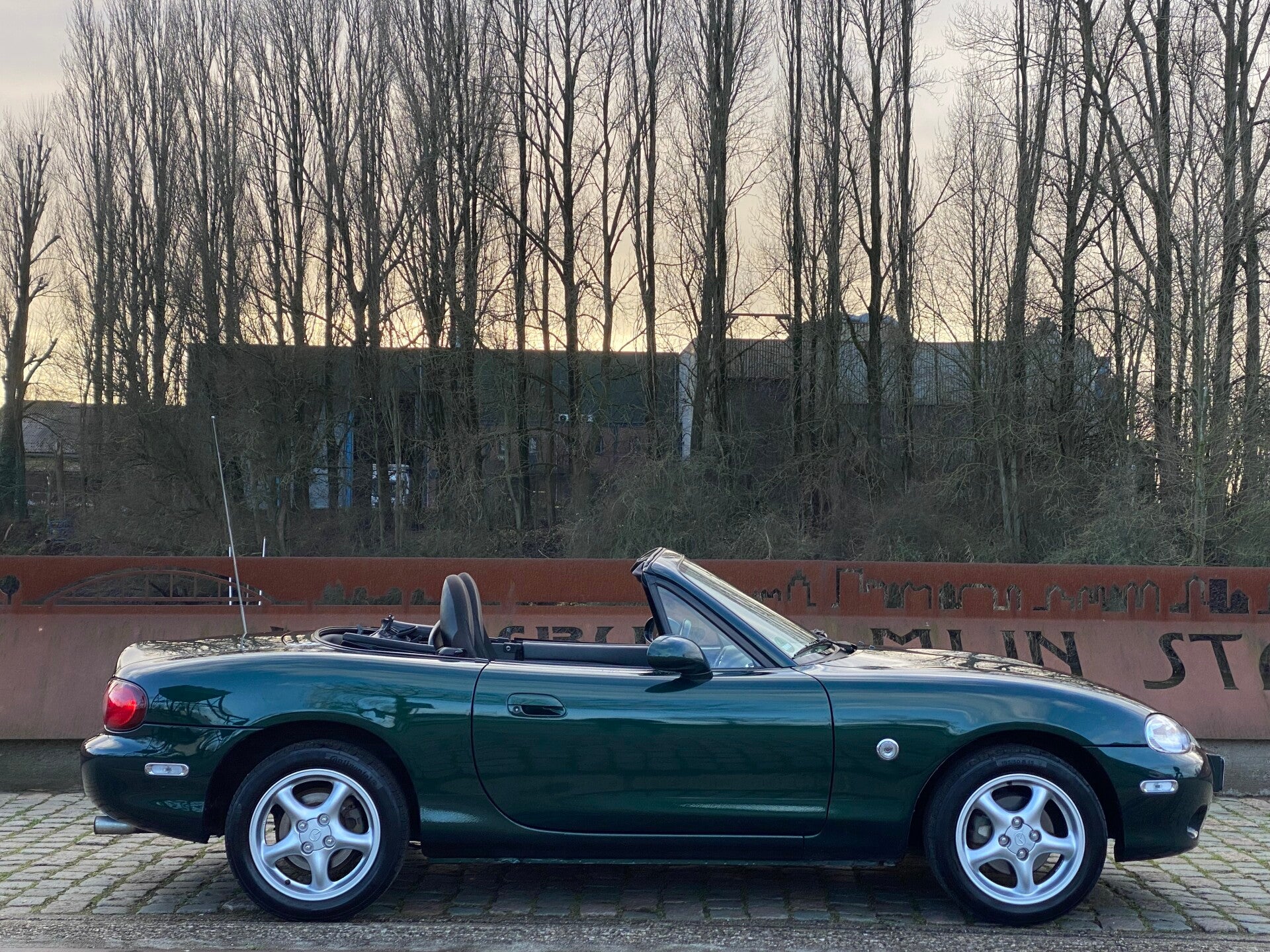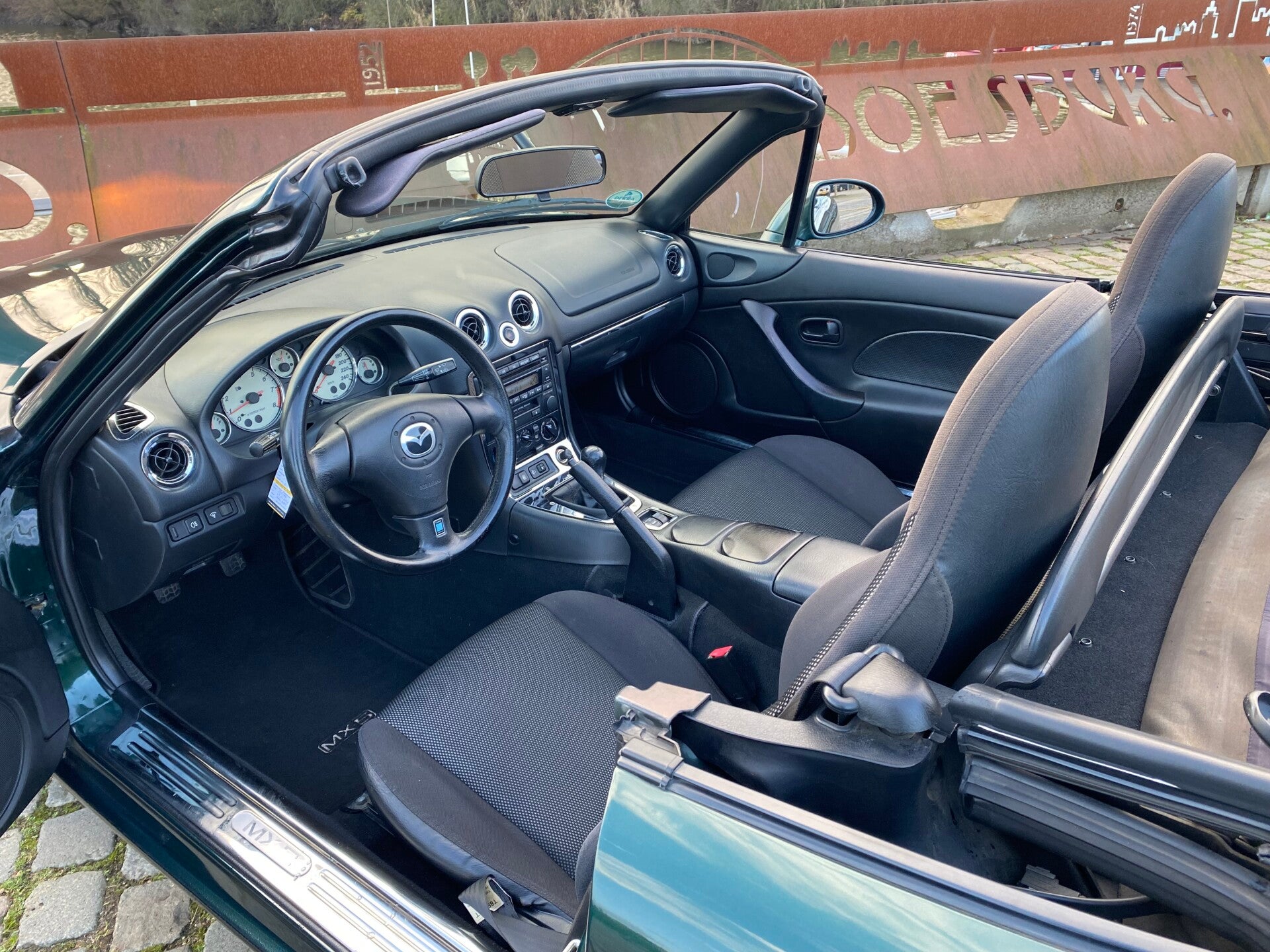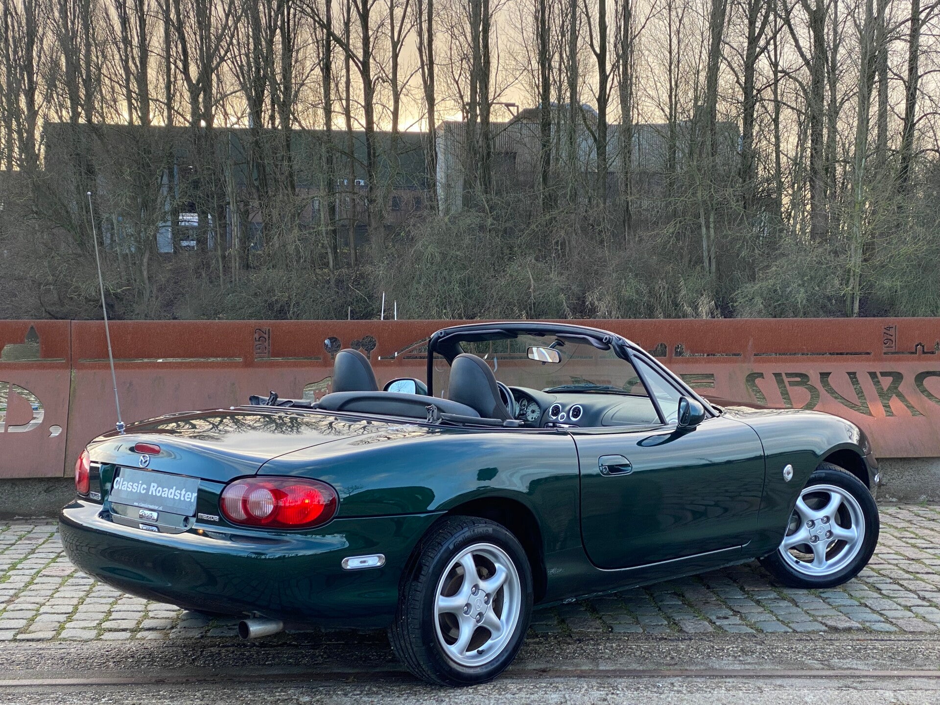 Deze leuke Mazda MX5 is nieuw geleverd in Duitsland en is in 2003 geleverd aan zijn laatste Duitse eigenaar. Herr ''Sielaff'' kocht de Mazda MX5 bij Mazda dealer ''Autohaus Kappes'' te Bernkastel. De auto had op dat moment 14.368km gereden en werd voor €15.000 aangekocht door Herr Sielaff getuige de nog aanwezige aankoopbon. De auto is puur als hobbyauto gebruikt en altijd netjes in de garage gestald geweest. Op onderhoud en reparaties is er nooit bespaard. Alle facture en documenten van de afgelopen 21 jaar zijn bewaard en zitten bij de auto. Wij hebben deze prachtige MX5 kunnen overnemen en hebben hem naar Nederland gehaald.