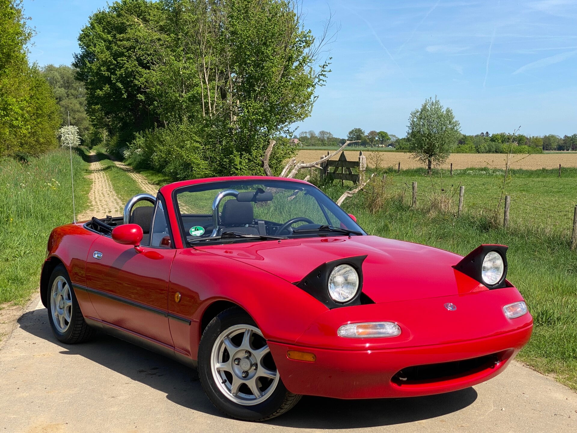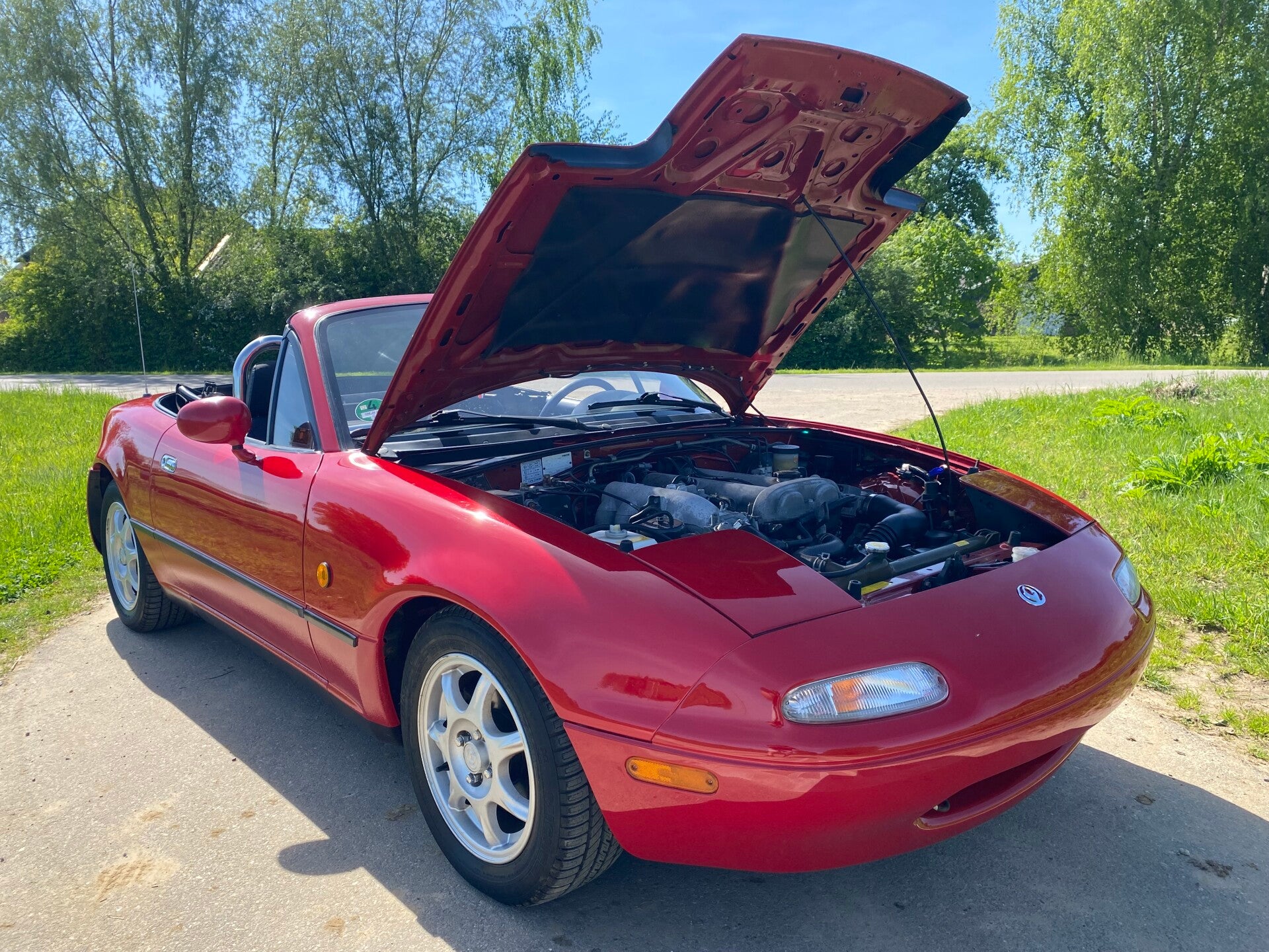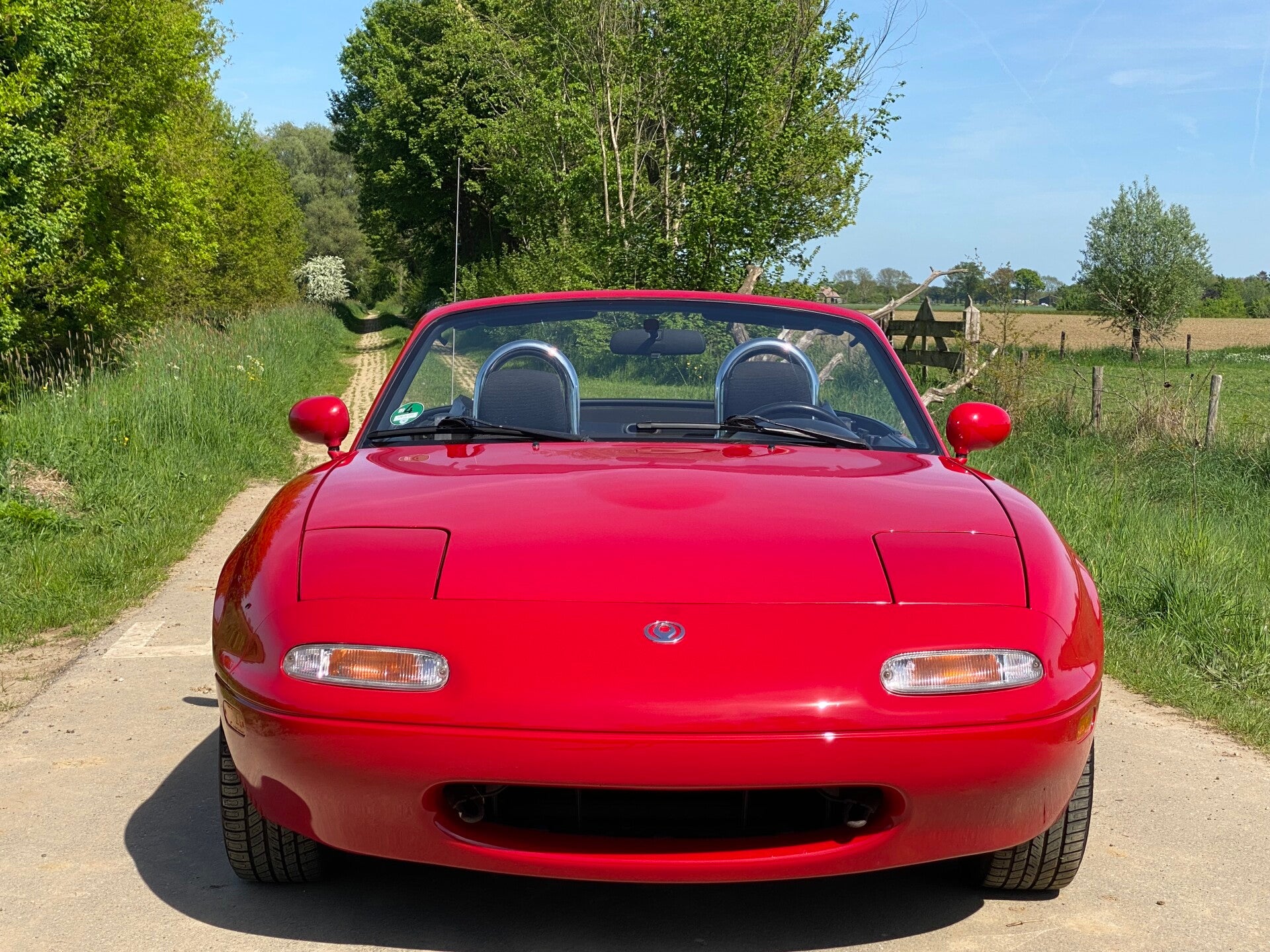Deze Mazda MX5 NA is in 1997 door de Duitse Mazda dealer ''Autohaus Klimann'' afgeleverd aan zijn eerste eigenaar uit Wuppertal. Na 2 andere eigenaren belandde deze rode MX5 in 2008 bij zijn laatste Duitse eigenaar. Deze herr gebruikte de roadster puur als zomer auto voor erbij en stalde de auto altijd droog in de garage. Na een periode van 17 jaar mocht de auto worden verkocht en hebben wij deze leuke MX5 over kunnen nemen.