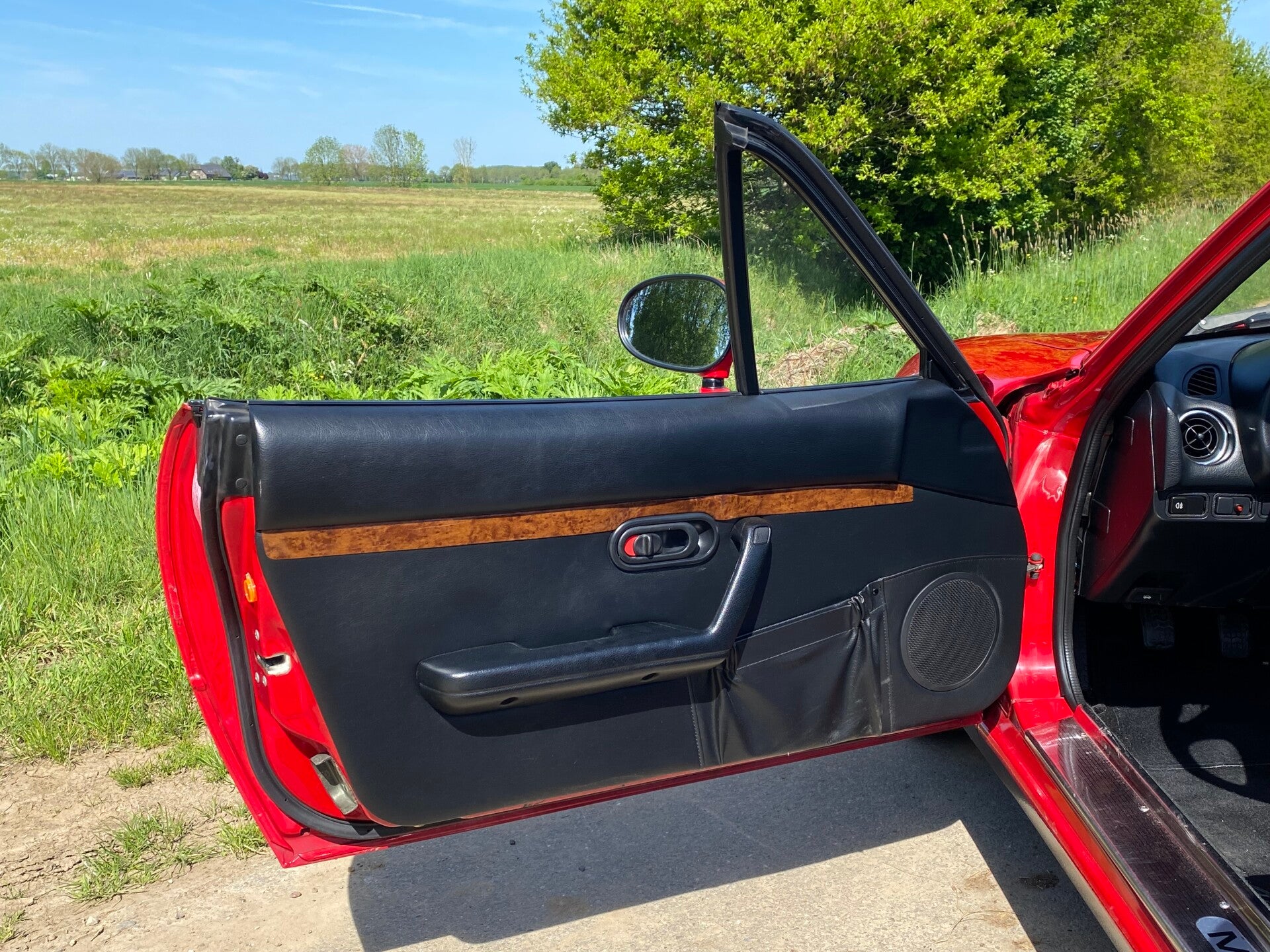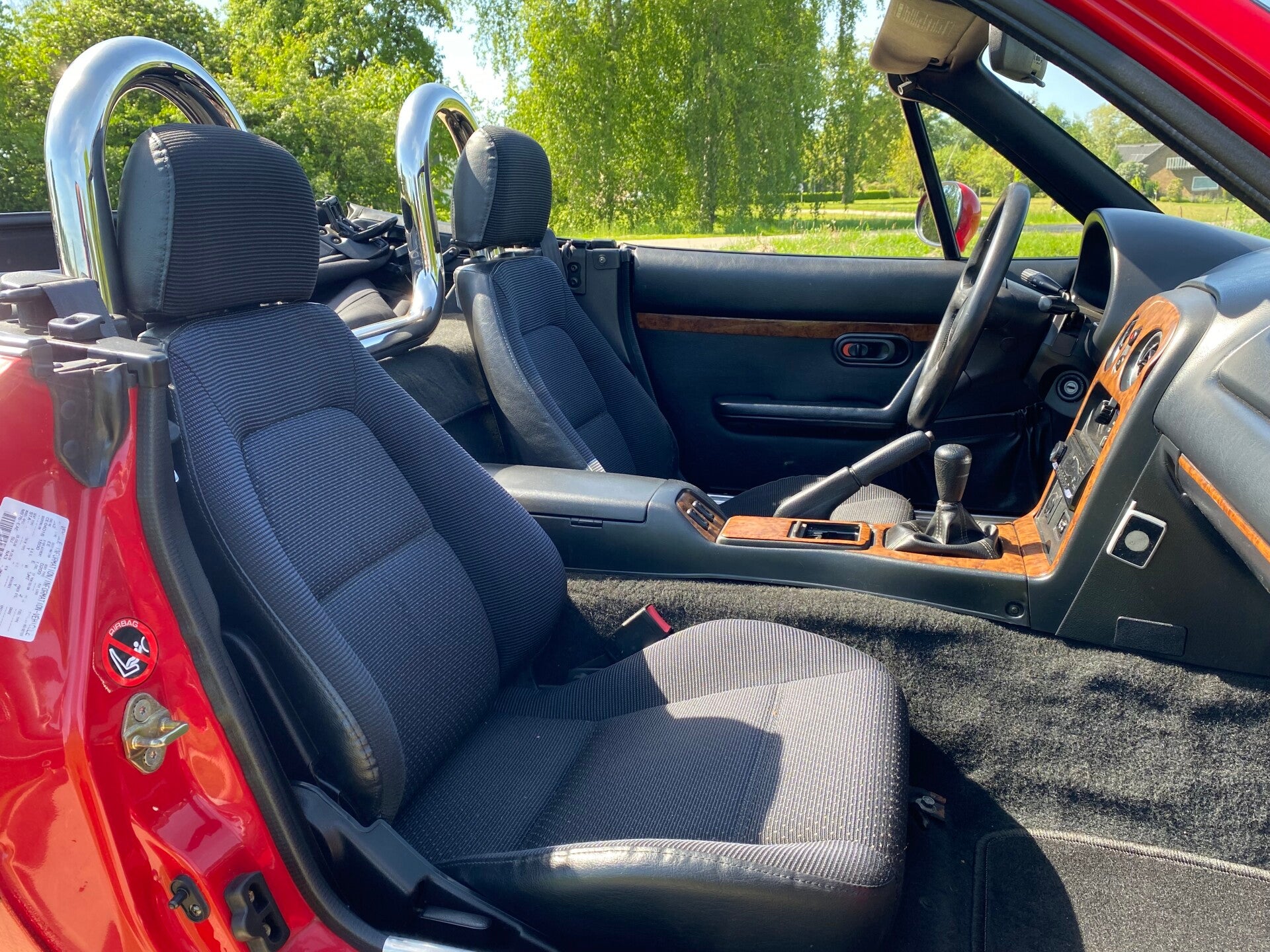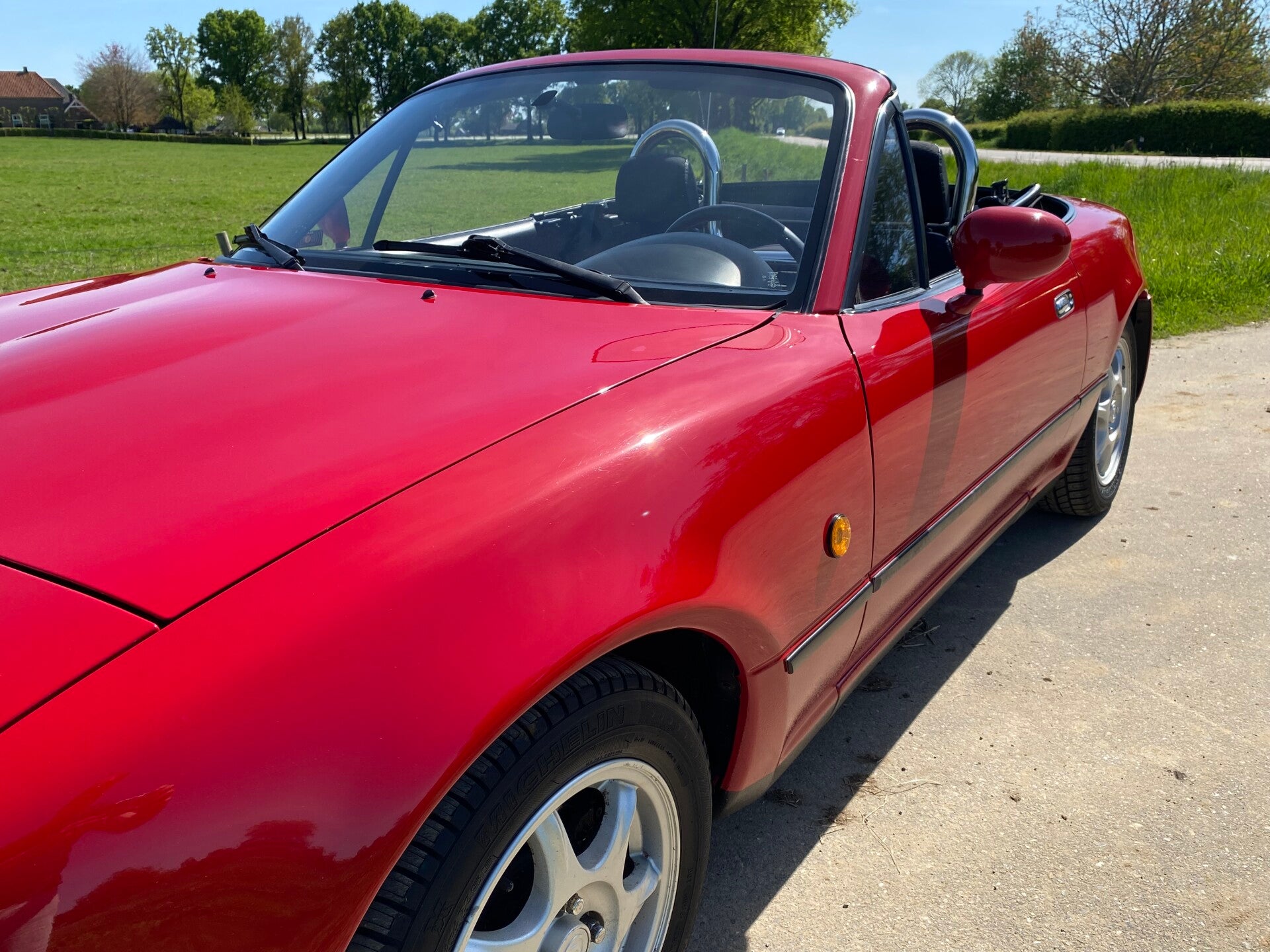 Deze Mazda MX5 NA is in 1997 door de Duitse Mazda dealer ''Autohaus Klimann'' afgeleverd aan zijn eerste eigenaar uit Wuppertal. Na 2 andere eigenaren belandde deze rode MX5 in 2008 bij zijn laatste Duitse eigenaar. Deze herr gebruikte de roadster puur als zomer auto voor erbij en stalde de auto altijd droog in de garage. Na een periode van 17 jaar mocht de auto worden verkocht en hebben wij deze leuke MX5 over kunnen nemen.