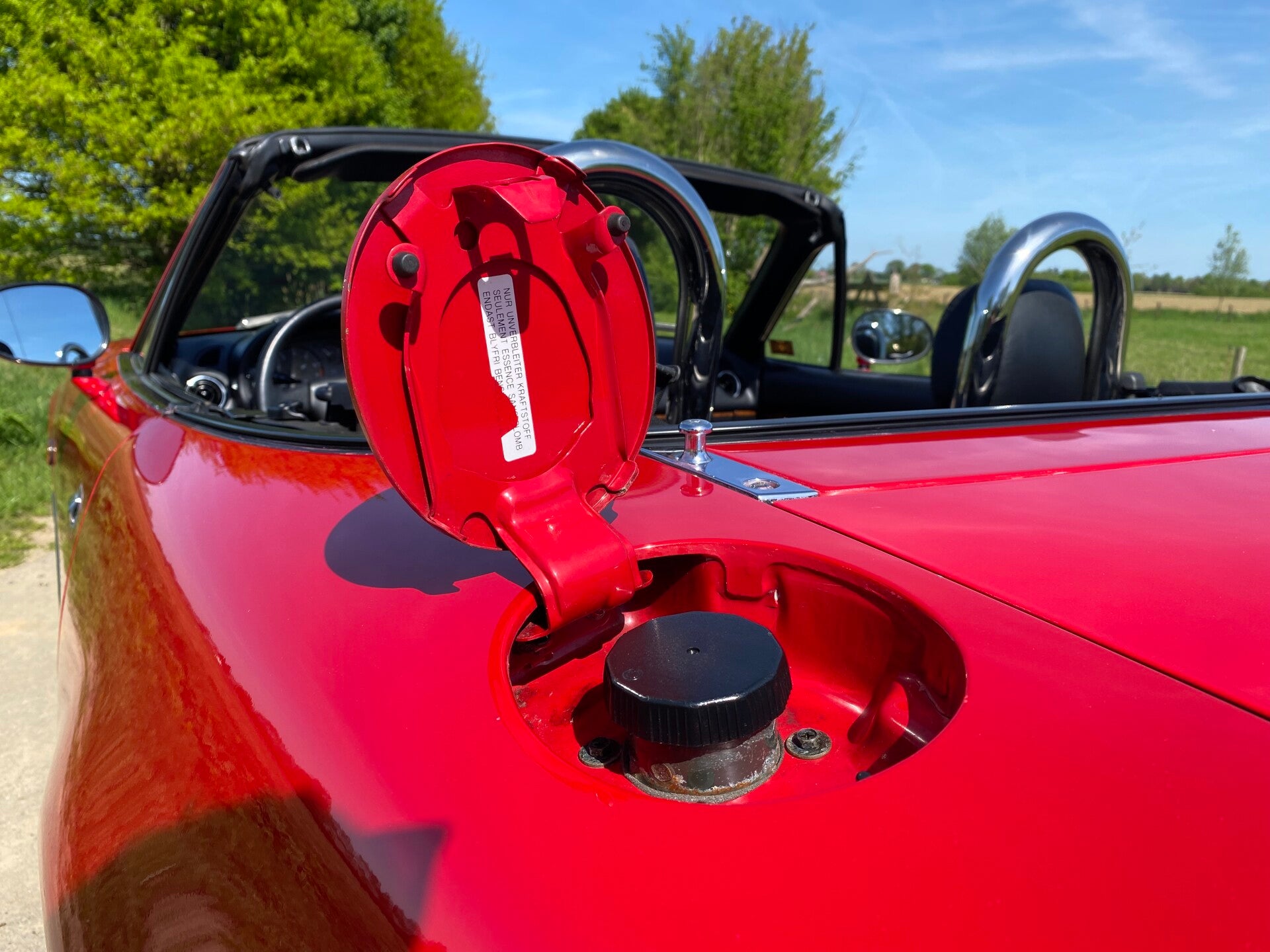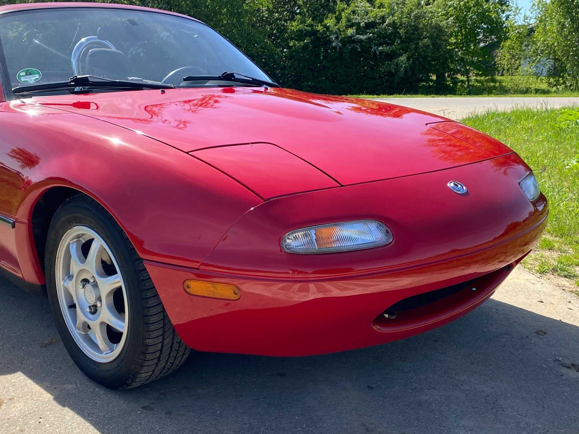 Deze Mazda MX5 NA is in 1997 door de Duitse Mazda dealer ''Autohaus Klimann'' afgeleverd aan zijn eerste eigenaar uit Wuppertal. Na 2 andere eigenaren belandde deze rode MX5 in 2008 bij zijn laatste Duitse eigenaar. Deze herr gebruikte de roadster puur als zomer auto voor erbij en stalde de auto altijd droog in de garage. Na een periode van 17 jaar mocht de auto worden verkocht en hebben wij deze leuke MX5 over kunnen nemen.