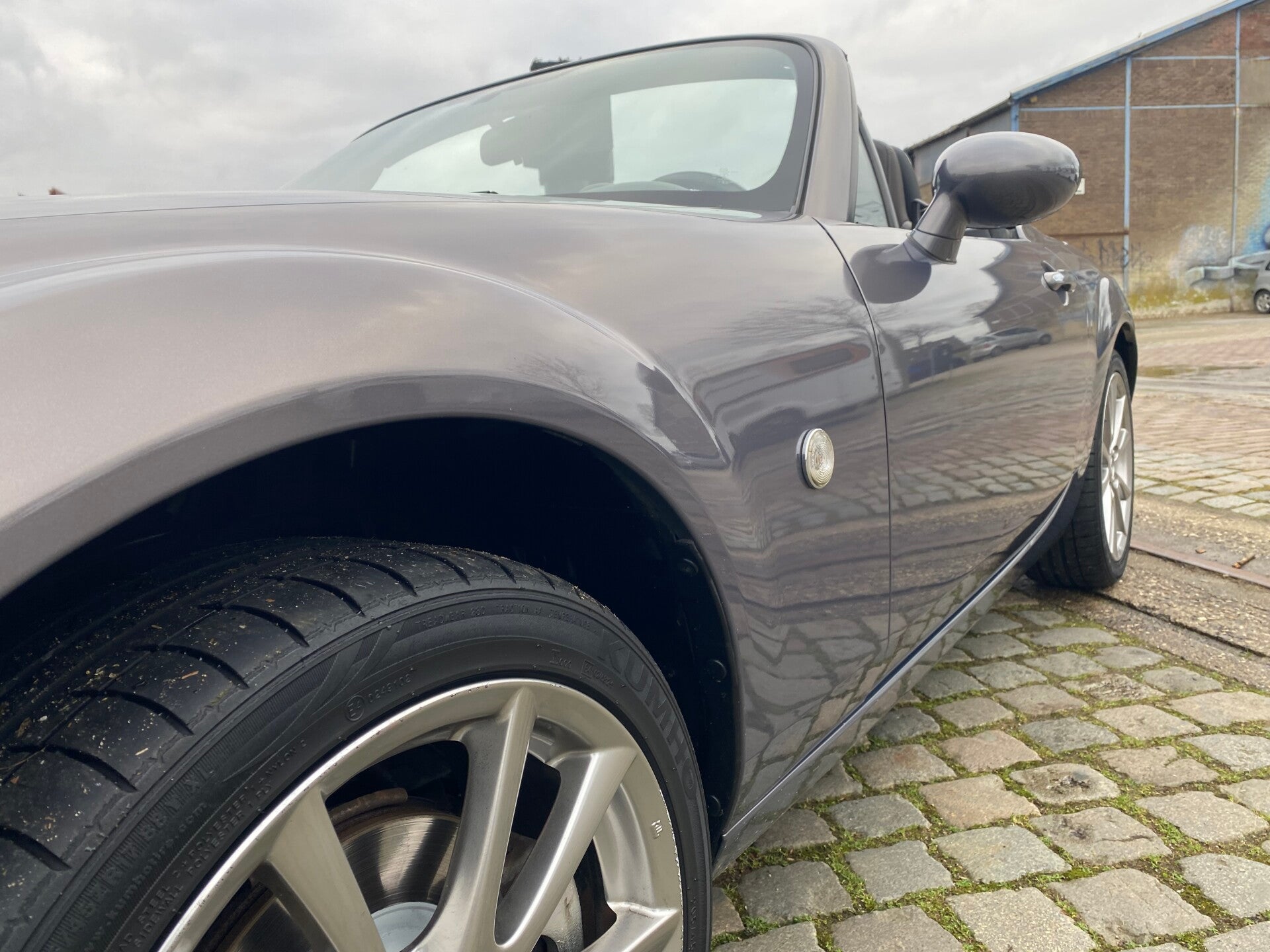 Dit mooie exemplaar in de kleur ''Galaxy Grey'' is nieuw geleverd in Duitsland. De laatste Duitse eigenaar heeft de auto tien jaar in bezit gehad als hobbyauto. Het is een heerlijk rijdende en comfortabele mx5! De auto beschikt onder andere over climate control, lichtmetalen velgen, stuurwielbediening, stoelverwarming enzovoorts.