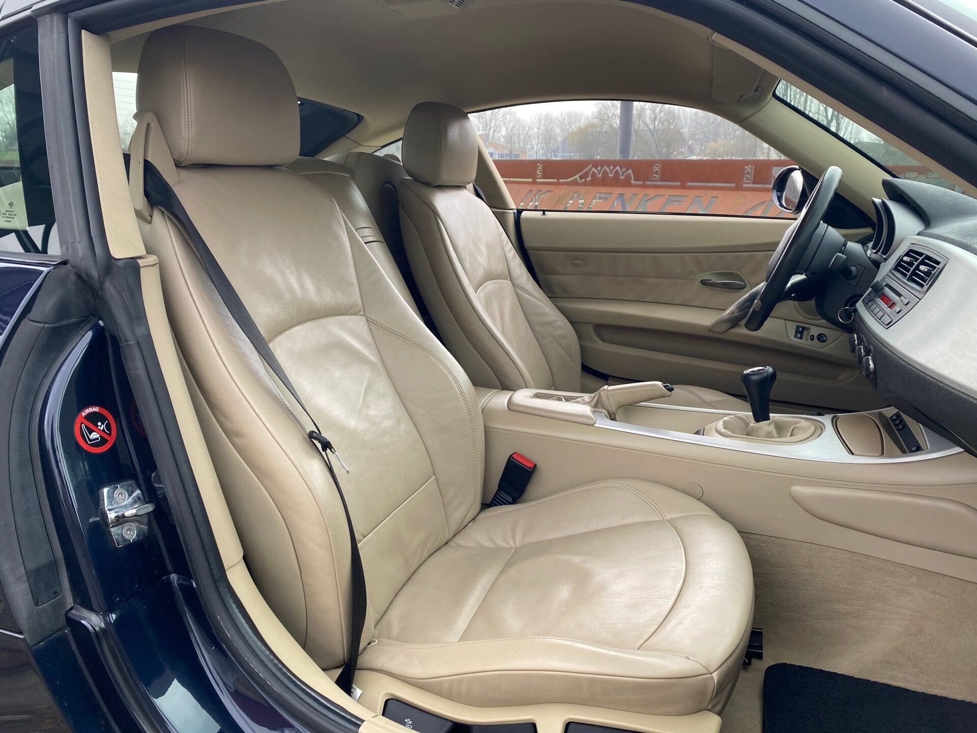 Zeer bijzondere BMW Z4 Coupe te koop in het ''Monacoblau Metallic" (diep donkerblauw) uit 2007 met een beige lederen interieur. De BMW Z4 is vooral bekend vanwege zijn cabriolet uitvoering. Echter is de Z4 ook als Coupe leverbaar geweest vanaf juni 2006. Vandaag de dag behoort deze uitvoering tot een exotisch hoogstandje uit de BMW geschiedenis en is zeer geliefd bij verzamelaars en liefhebbers!