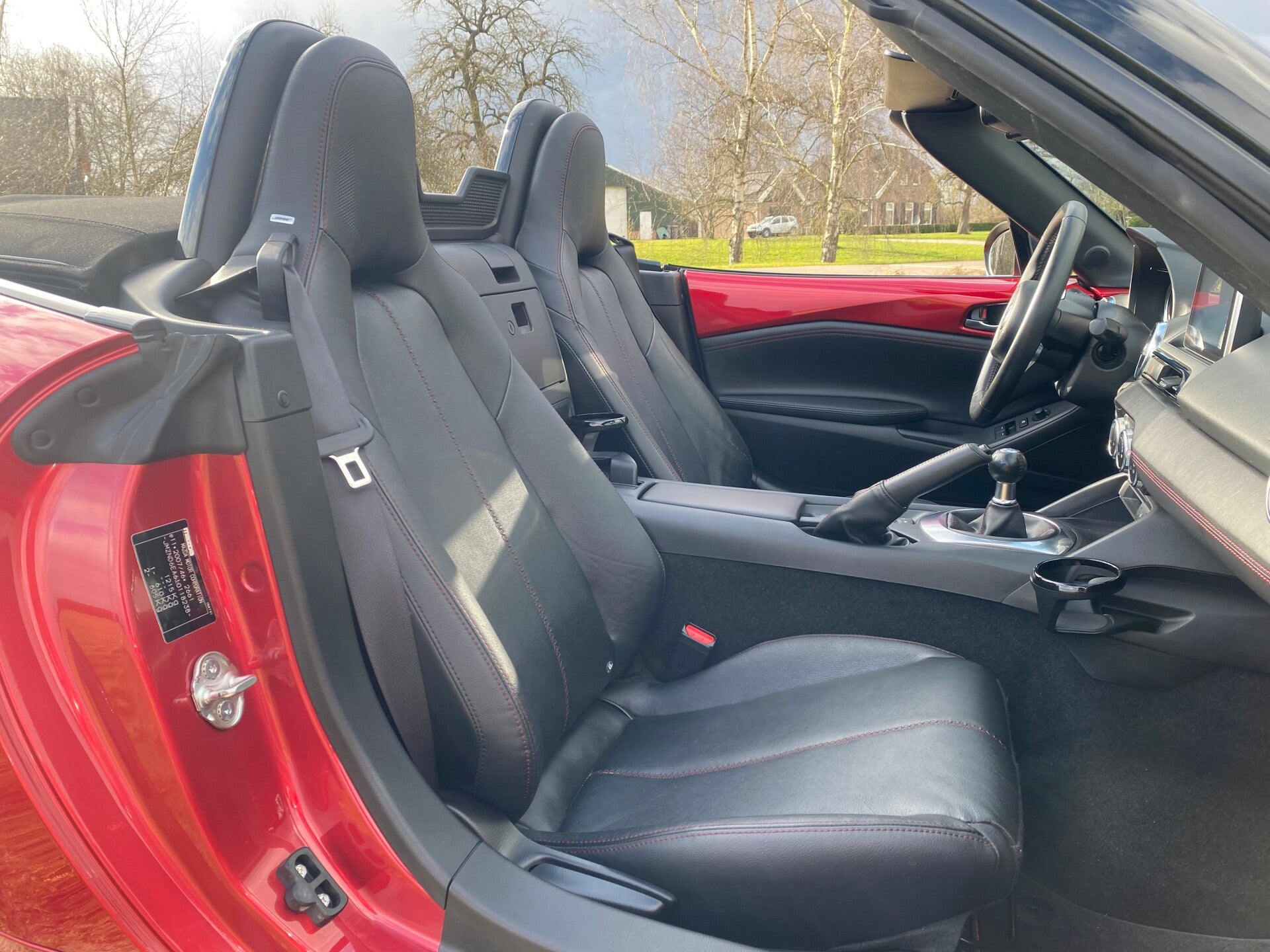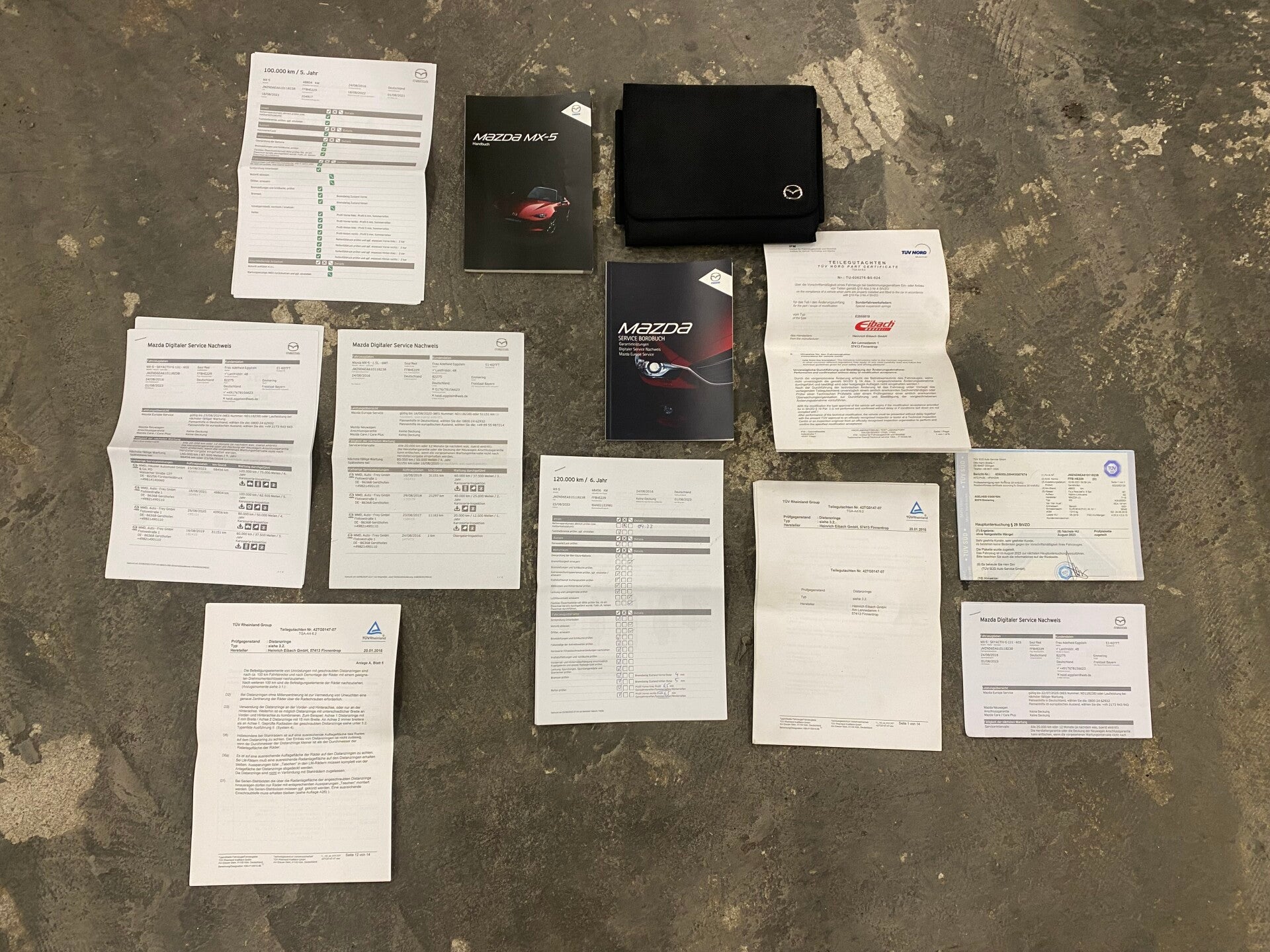 Deze Mazda MX5 ND is in 2016 nieuw afgeleverd door Mazda dealer ''Auto - Frey GmbH'' te Gersthofen in Duitsland. De eerste eigenaar heeft de auto 9 jaar in bezit gehad en deze altijd bij de dealer laten onderhouden. De vorige eigenaar heeft er een set Eibach verlagingsveren onder gemonteerd wat de sportiviteit van de auto te goede komt. De auto is dan ook volledig bekend in het Mazdasysteem. De verkeert in een zeer nette staat en is ingeruild bij de Mazda dealer.