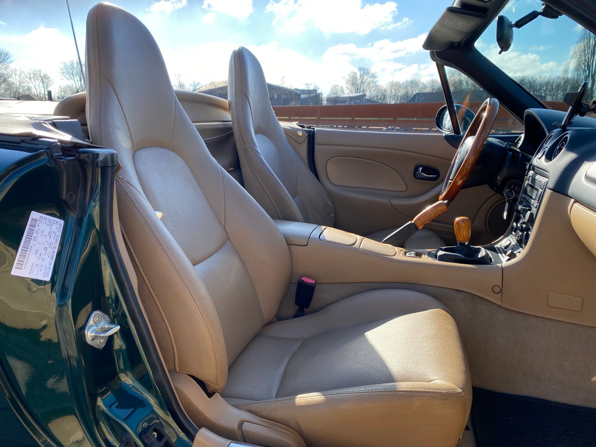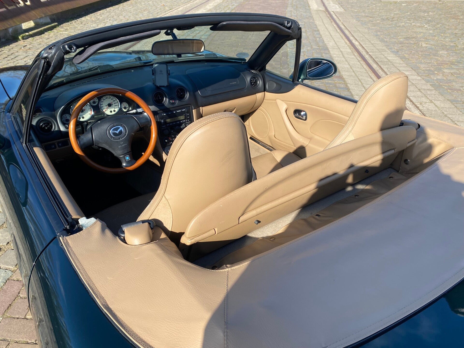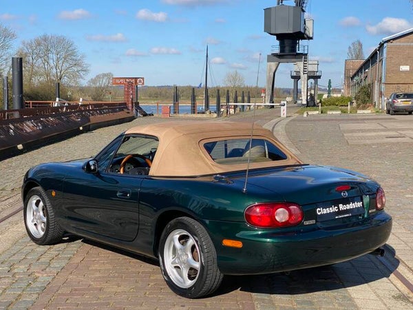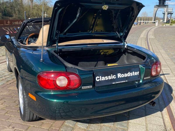 Een klassieke uitvoering van de bekende Mazda MX5 die in een zeer nette staat verkeert! De Mazda MX5 NBFL Memories edition is de opvolger van de Mazda MX5 NB Miracle. Ook bij de Memories uitvoering springt dat prachtig contrasterende interieur met notenhouten accenten er weer uit. De combintie van de donkergroene lak, het lederen beige interieur en de notenhouten Nardi details (stuur, middenconsole, versnellingspook en handrem) maken hem een lust voor het oog!