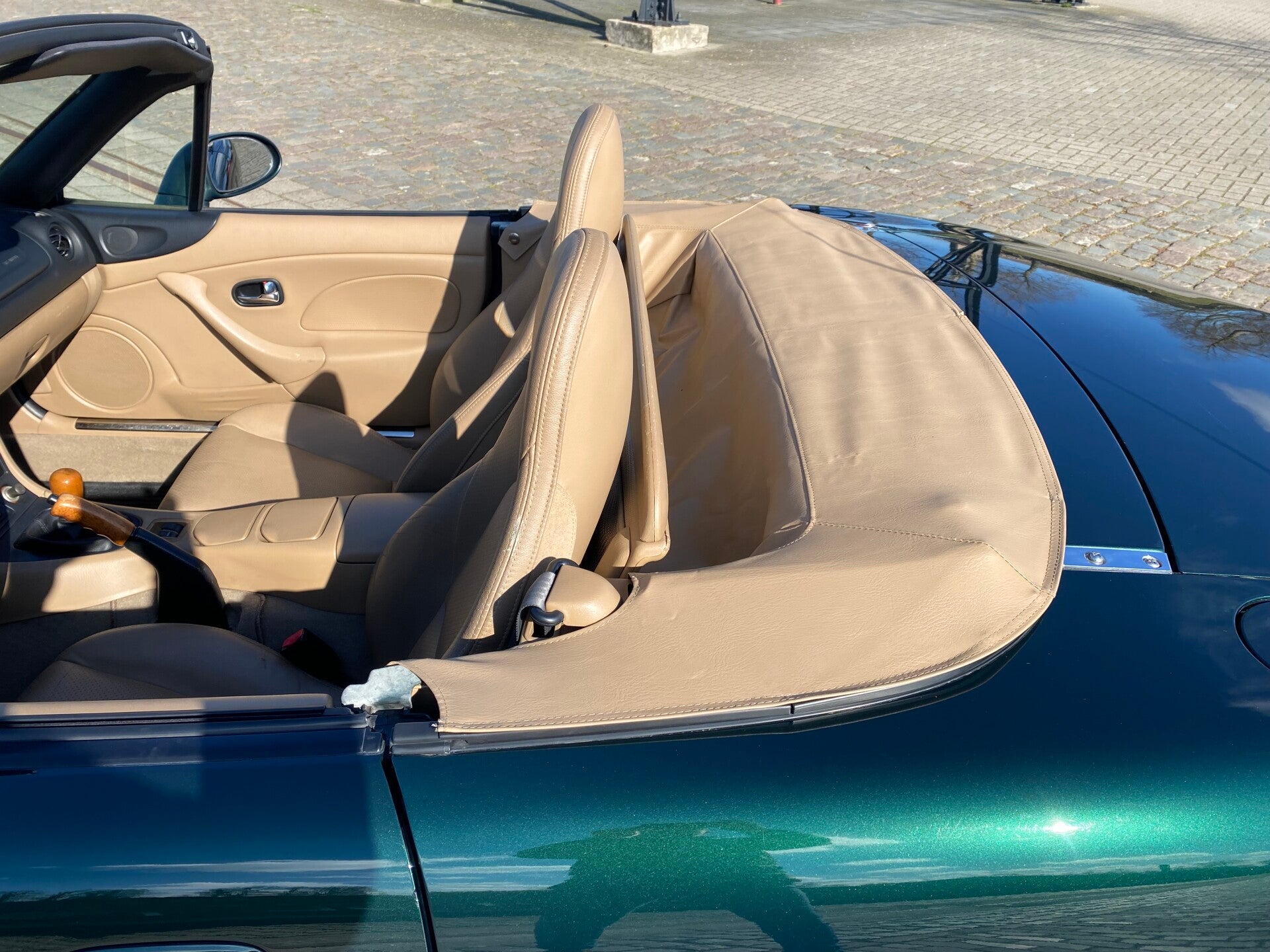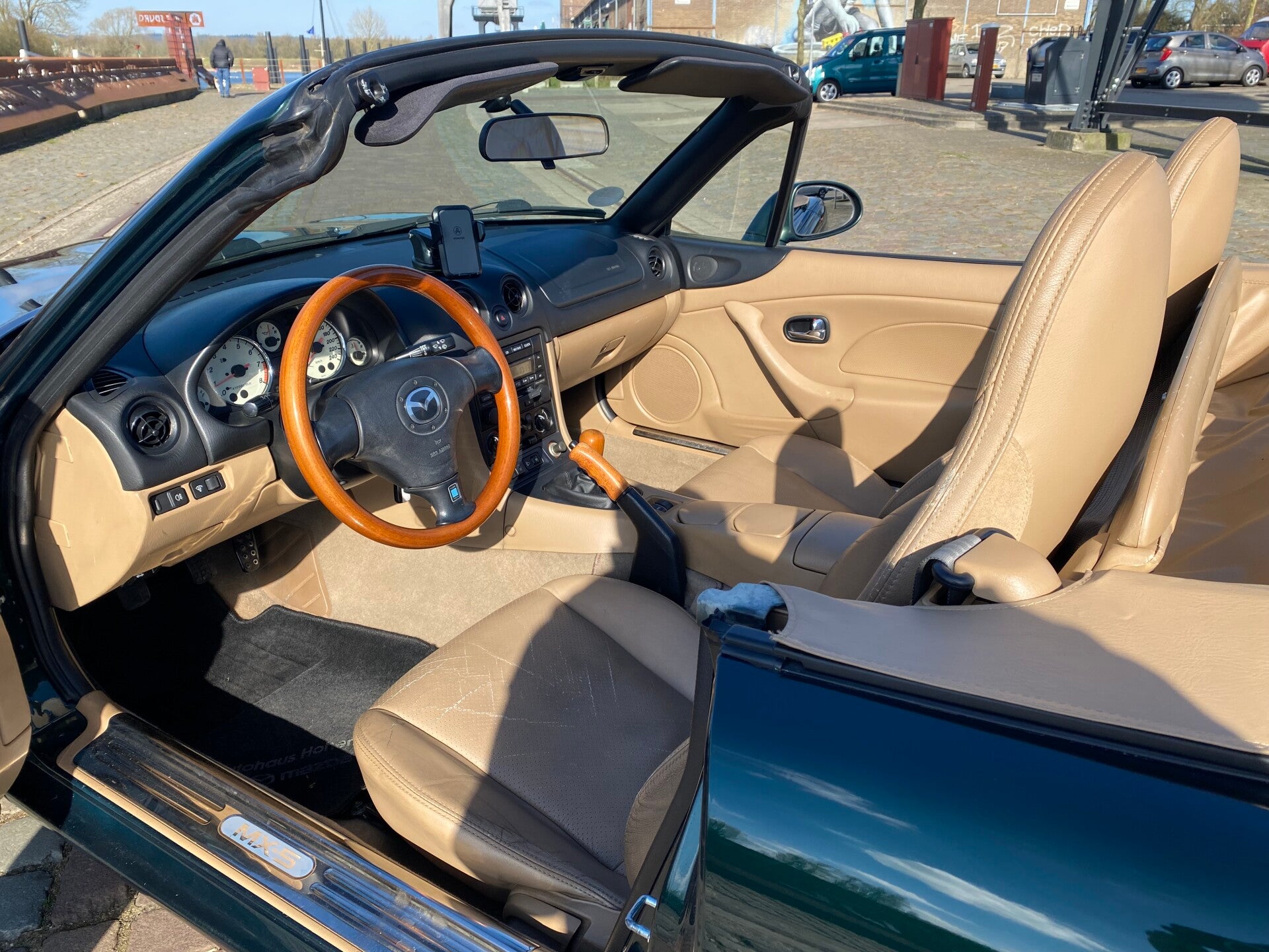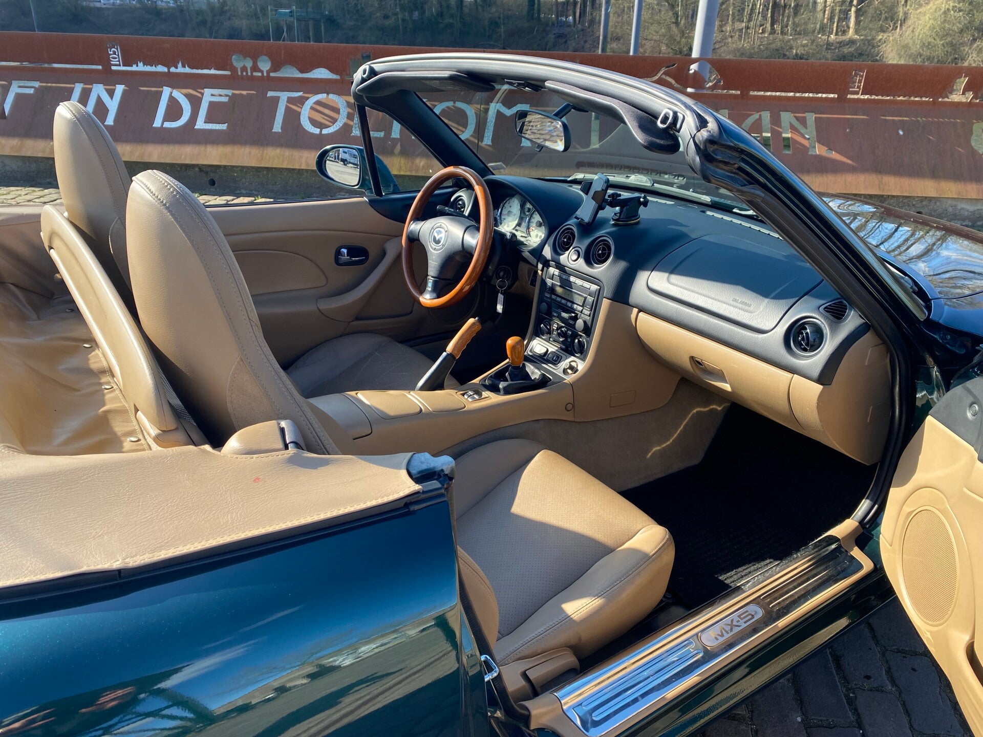 Een klassieke uitvoering van de bekende Mazda MX5 die in een zeer nette staat verkeert! De Mazda MX5 NBFL Memories edition is de opvolger van de Mazda MX5 NB Miracle. Ook bij de Memories uitvoering springt dat prachtig contrasterende interieur met notenhouten accenten er weer uit. De combintie van de donkergroene lak, het lederen beige interieur en de notenhouten Nardi details (stuur, middenconsole, versnellingspook en handrem) maken hem een lust voor het oog!