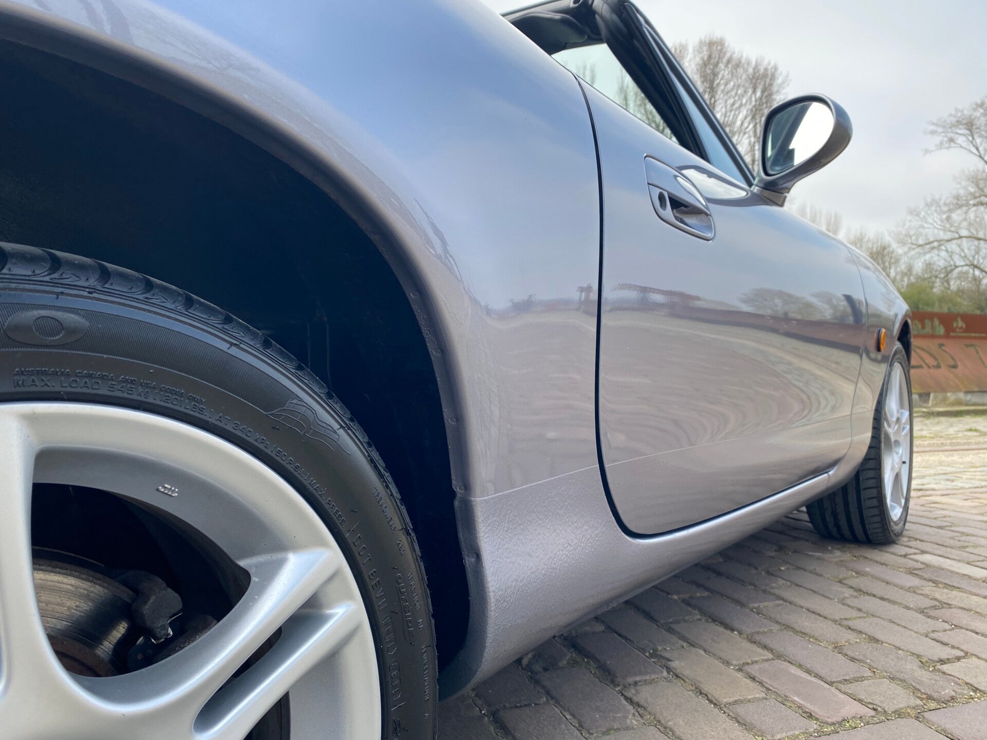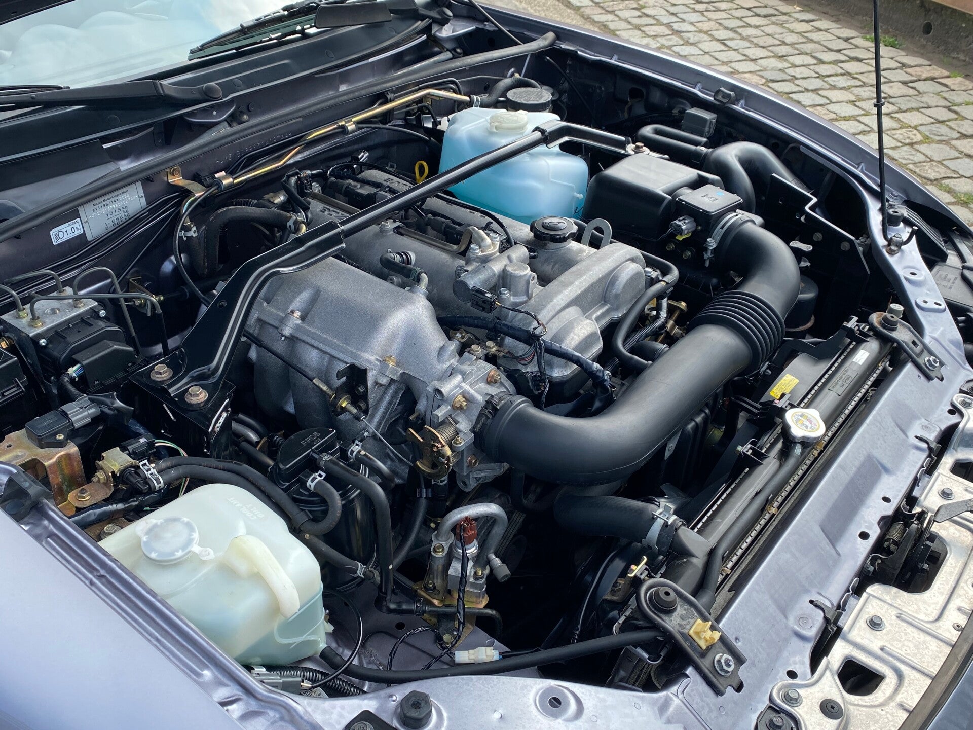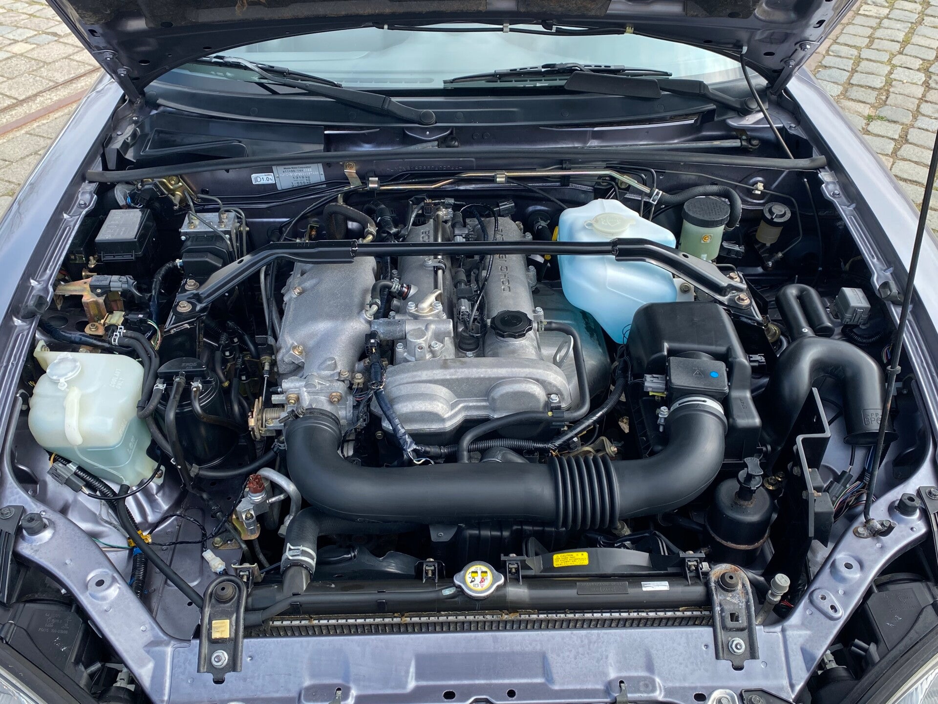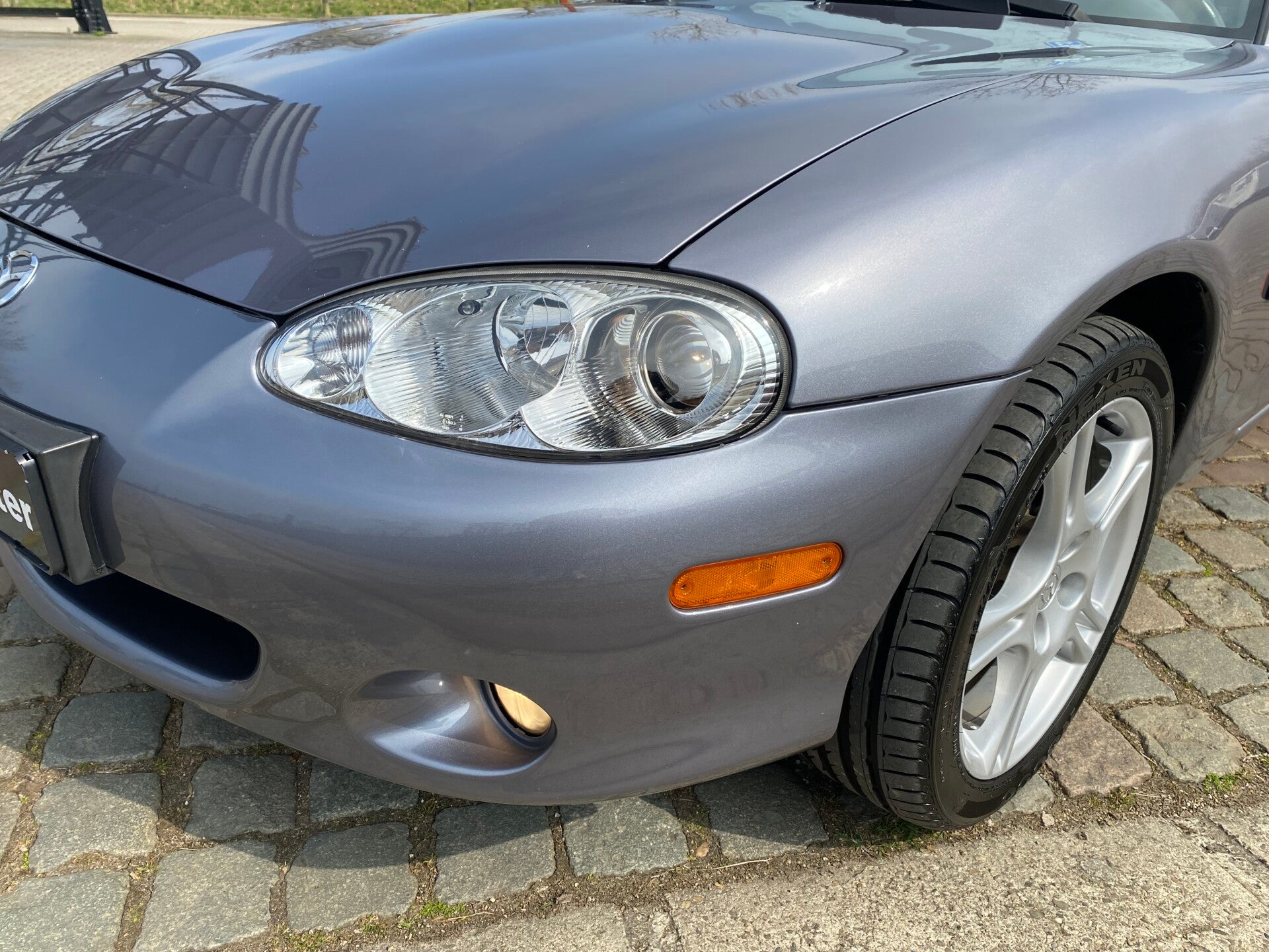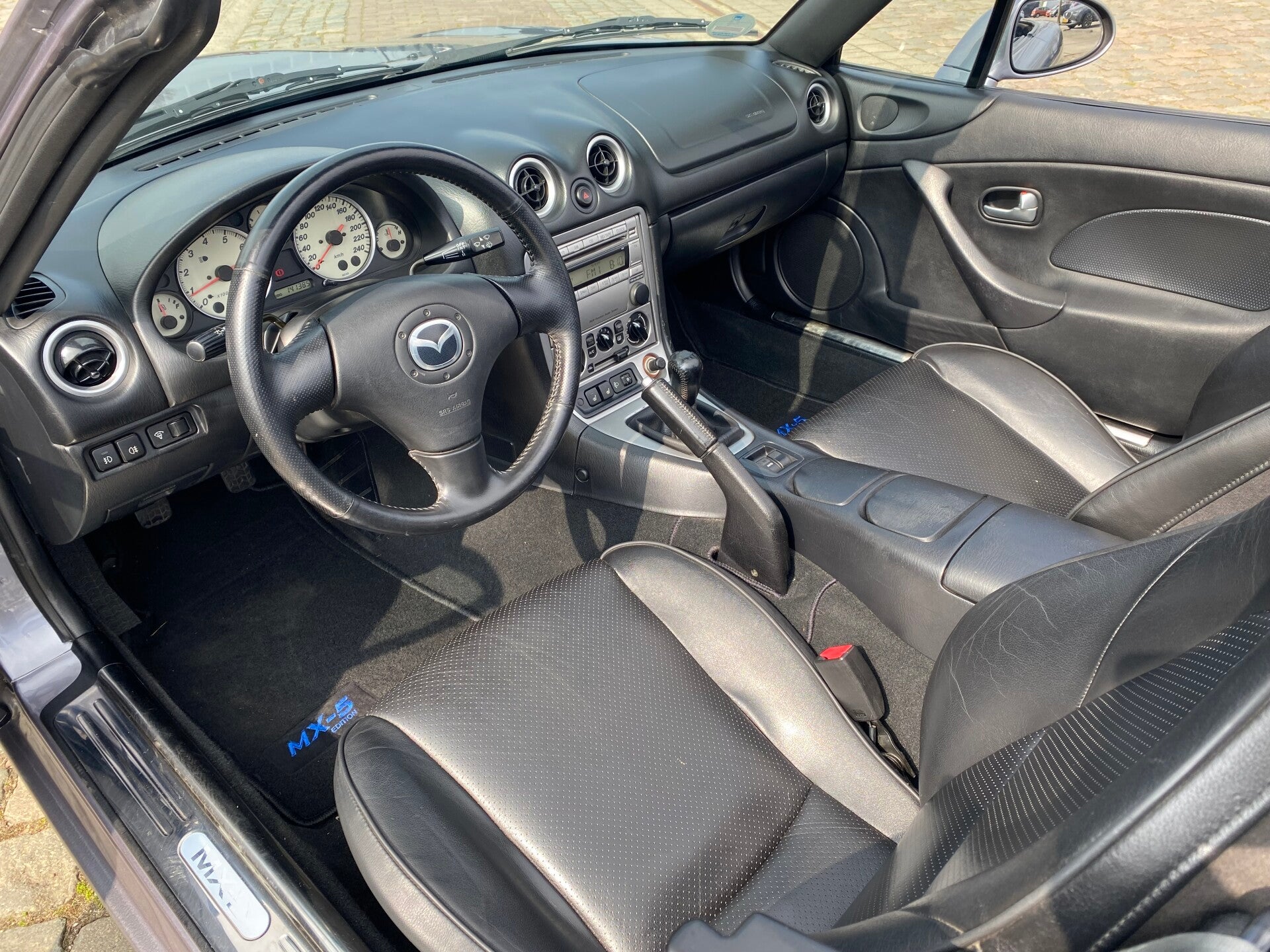 Deze mooie Mazda MX5 Sportive in het Titanum Grey hebben we gekocht van de derde Duitse eigenaar diet de auto vanaf 2016 in bezit heeft gehad. De auto is altijd netjes onderhouden en beschikt over de speciale onderdelen die de Sportive speciaal maken (Bilstein schokbrekers, 6 bak, Limited Slip Differentieel, mistlampen, leder enz.) Wij hebben de auto zelf vanuit Duitsland naar Nederland gehaald om aan onze collectie toe te voegen.