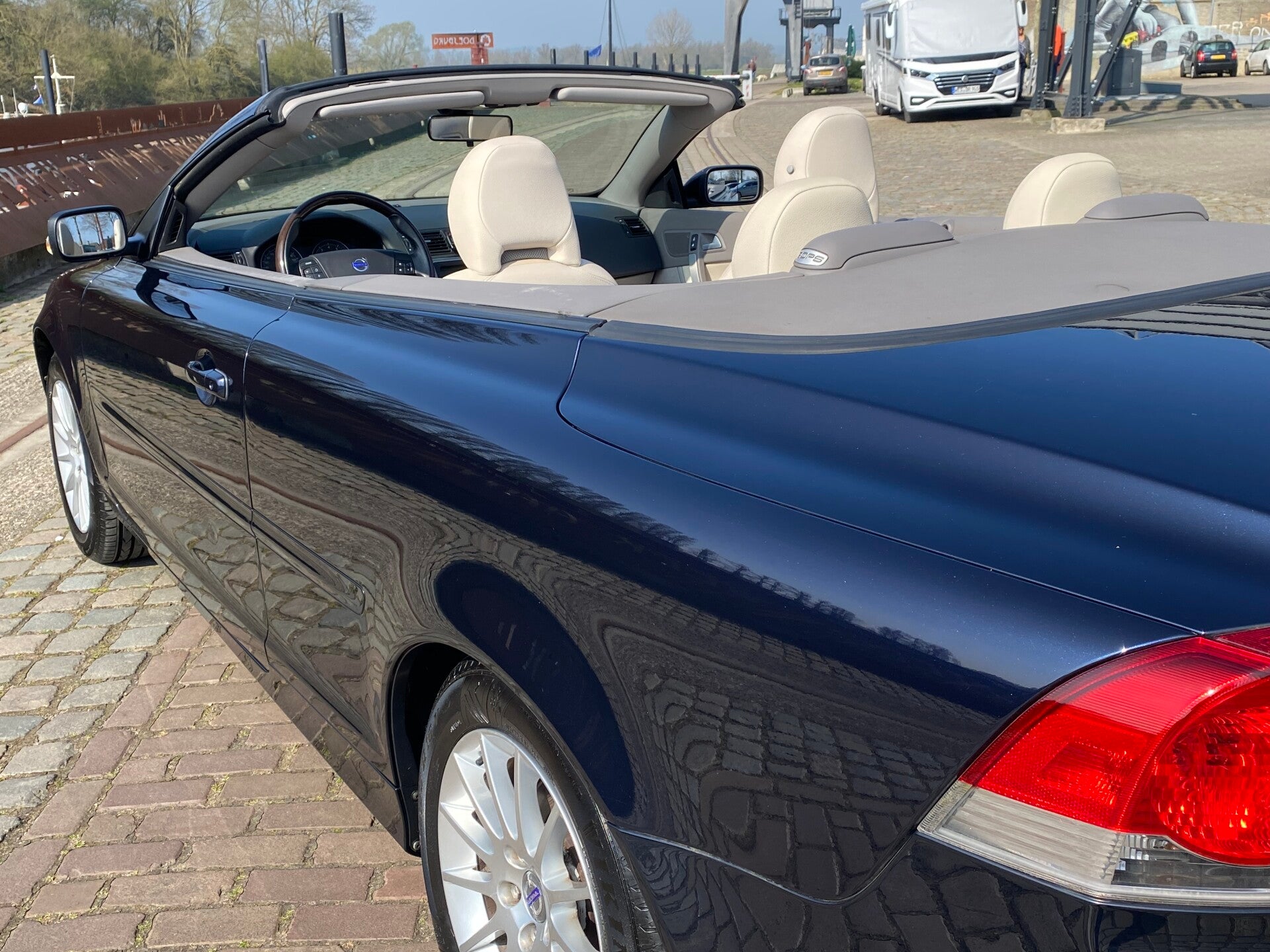 Onze mooie donkerblauwe C70 is op 22-01-2007 afgeleverd aan zijn eerste eigenaar in Belgie. In 2018 is de auto naar Nederland gekomen met een kilometerstand van 97.829 kilometer. In Nederland heeft de auto slechts 2 particuliere eigenaren gehad die de Volvo altijd netjes hebben onderhouden. Recent is de Volvo ingeruild bij een Volvo dealer in het westen van Nederland en hebben wij deze prachtige convertible mogen overnemen.