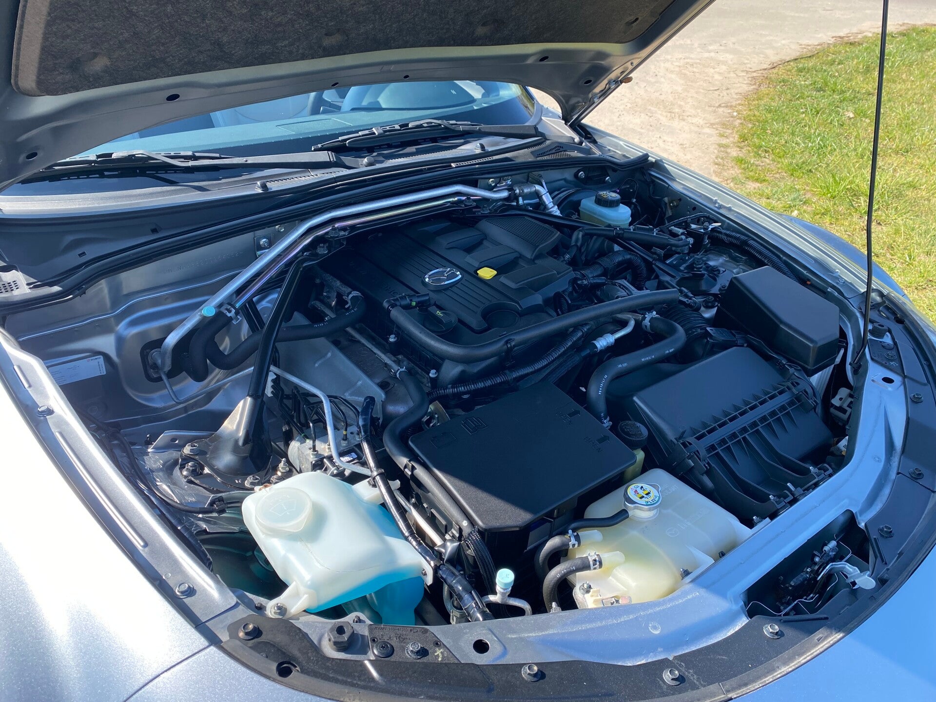 De Mazda verkeert in een zeer nette staat zowel optisch als technisch. De mooie ''Plutosilber'' metallic lak met het licht grijze lederen interieur is een lust voor het oog! De auto is luxe uitgevoerd met cruise control, leder, stoelverwarming, climate control, elektrisch hardtop enz.