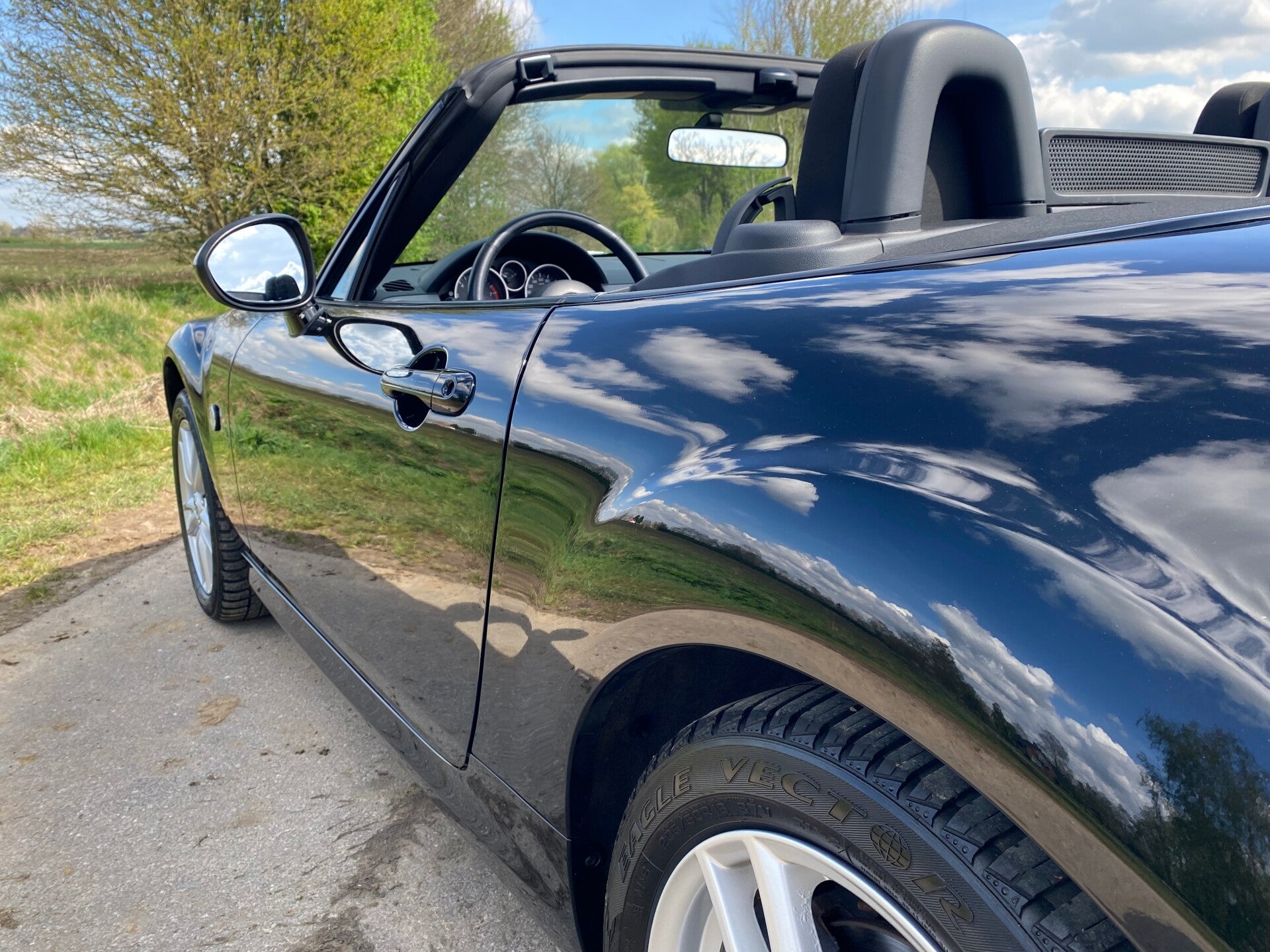 De Mazda verkeert in een zeer nette staat zowel optisch als technisch. De lak is uitgevoerd in ''Brilliantschwarz'' in combinatie met een zwart stoffen interieur. De perfecte auto voor iemand die een betrouwbare jong gebruikte cabrio zoekt!