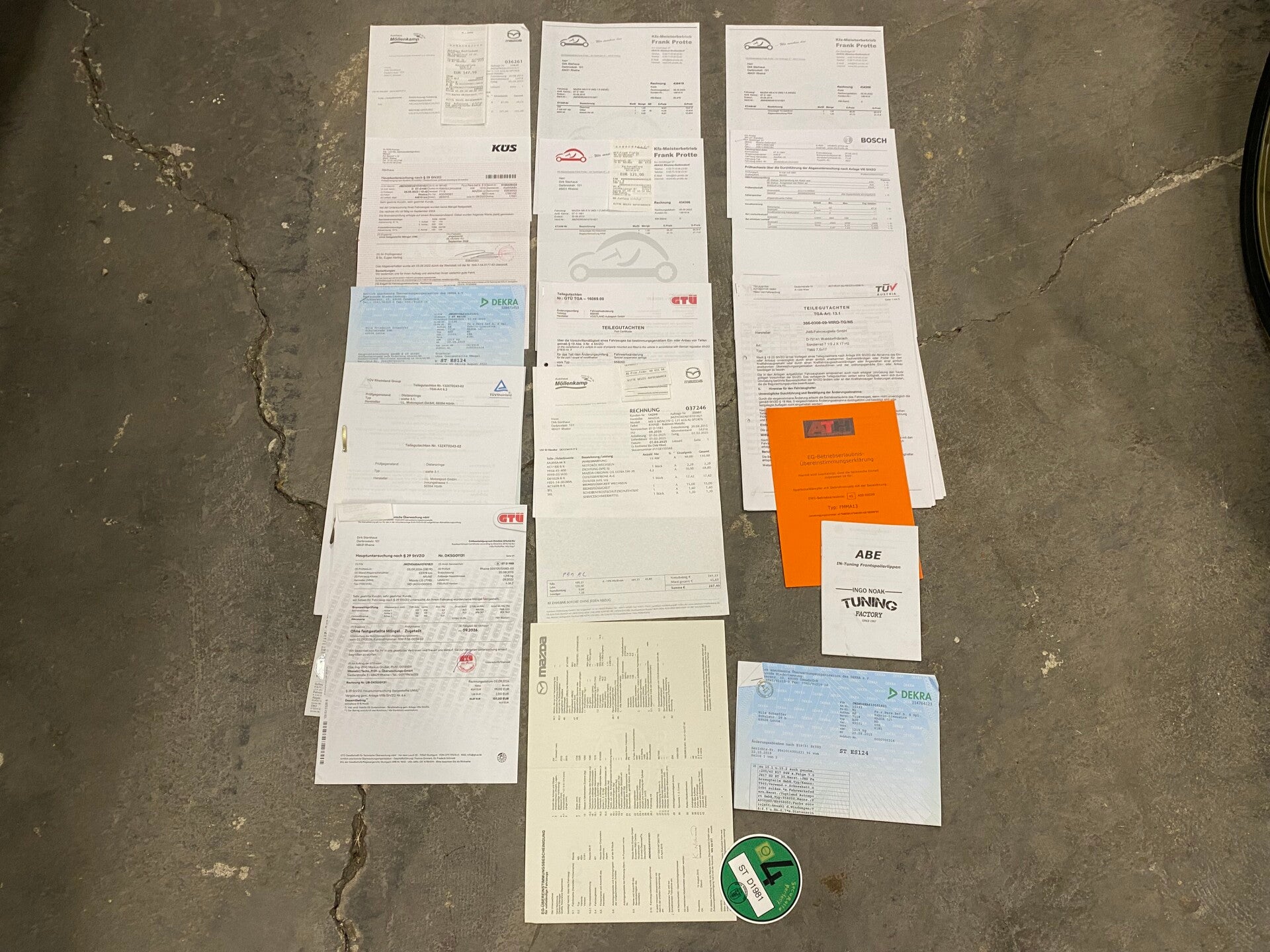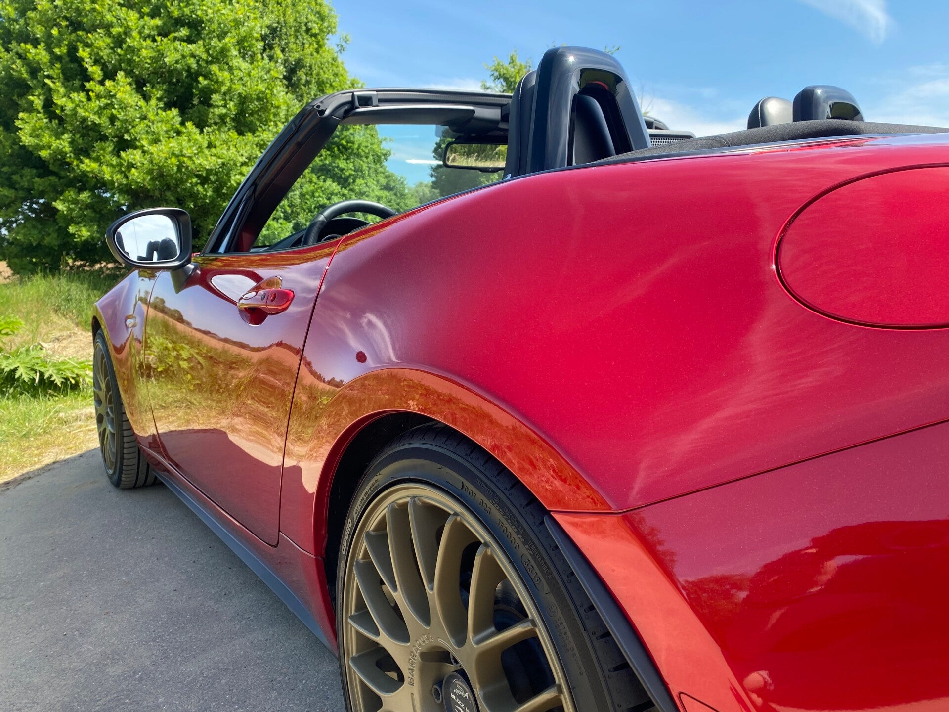 Deze Mazda MX5 ND is in 2015 nieuw afgeleverd door Mazda dealer ''Automobile Paul Flothkötter GmbH & Co'' te Nordwalde in Duitsland. De Mazda is altijd als liefhebbersauto gereden en verkeert in een zeer nette staat. De vorige eigenaar heeft de MX5 voorzien van enkele mooie sportieve items. Onder andere een set Bilstein schokbrekers en Bilstein verlagingsveren wat de sportiviteit van de auto ten goede komt. Een sportuitlaat en een mooi set matkleurige ''Barracuda Racing Wheels'' 17 inch sportvelgen. De auto is volledig bekend in het Mazdasysteem. Wij hebben de auto mogen overnemen wegens inkrimping van het wagenpark van de laatste eigenaar.