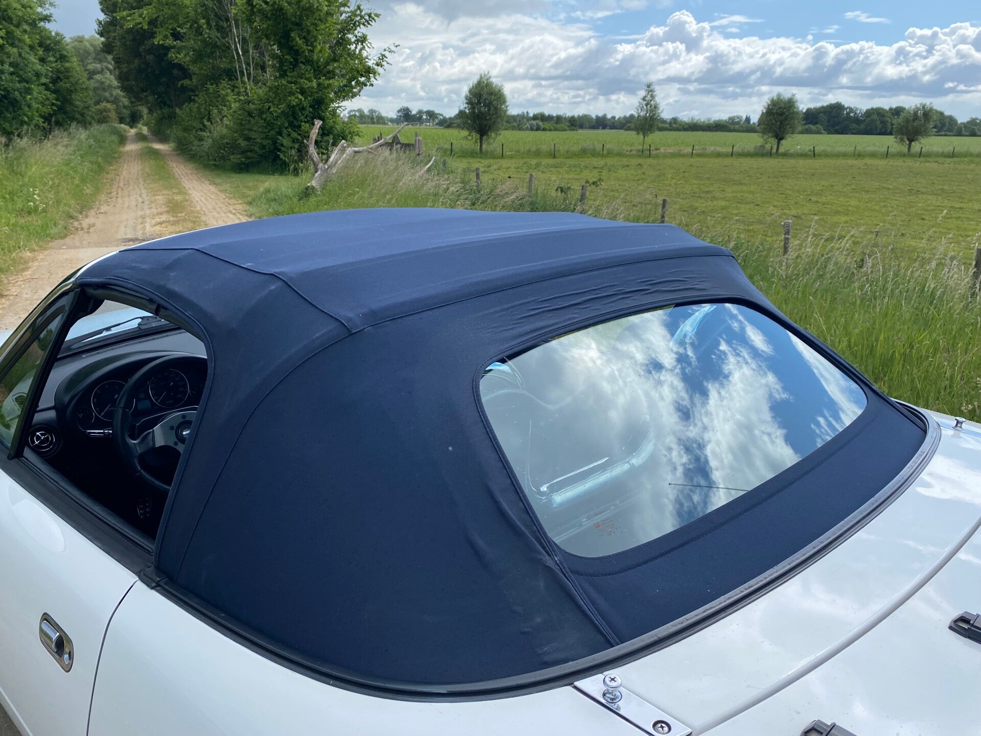 Wij hebben de auto weer fris gemaakt en voorzien van een onderhoudsbeurt voor de volgende liefhebber. De MX5 is voorzien van een donkerblauwe stoffen softtop die in een goede staat verkeert