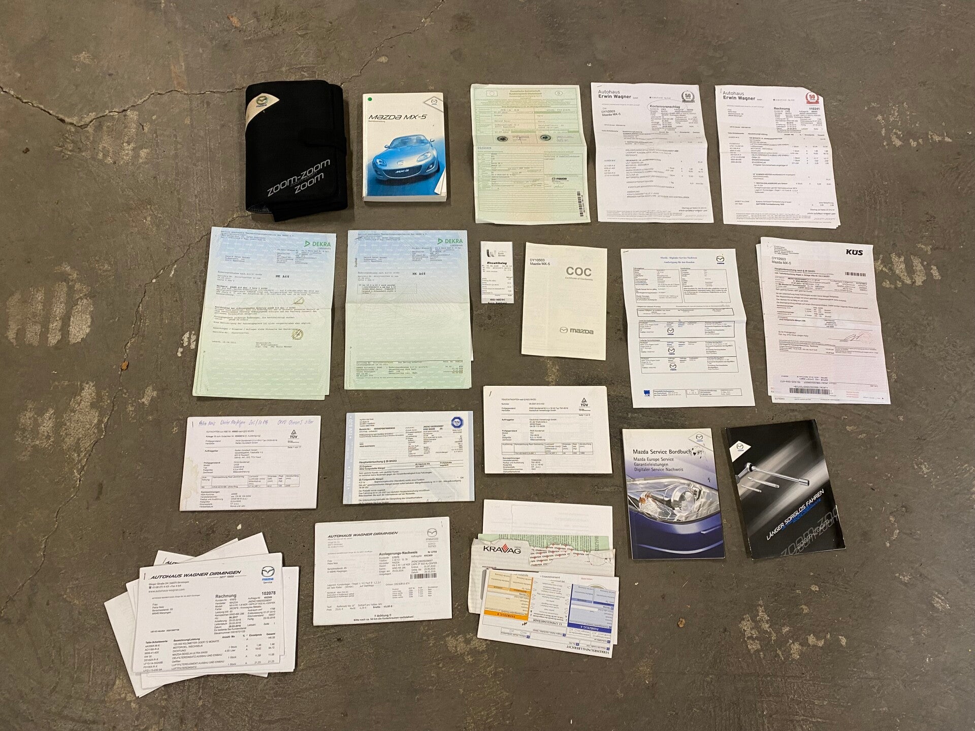Deze ''Metropolitan Grey'' Mazda MX5 NC Roadster Coupe werd op 30 juni 2010 afgeleverd aan zijn eerste Duitse eigenaar door Mazda dealer ''Erwin Wagner GmbH''. Bij dit bedrijf is de auto voor het grootste gedeelte in onderhoud geweest. De auto is altijd uitstekend verzorgd en er zit veel documentatie bij de auto. De Mazda verkeert in een zeer nette staat zowel optisch als technisch. De auto is luxe uitgevoerd met cruise control, een elektrische hardtop, stoelverwarming, climate control, centrale vergrendeling enz.