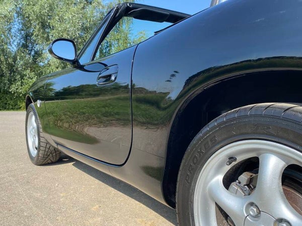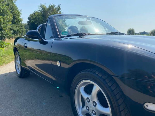 Een uniek mooie Mazda MX5 NB facelift 1.6 te koop. In 1997 kwam de tweede generatie (NB) van de best verkochte roadster ter wereld uit. In 2001 kwam daar de faceliftversie van op de markt, de zogenaamde NBFL. Deze uitvoering is gebouwd tot en met 2005 waarna de NC kwam. Dit exemplaar is uitgevoerd in een zwarte lak met een zwart stoffen interieur.