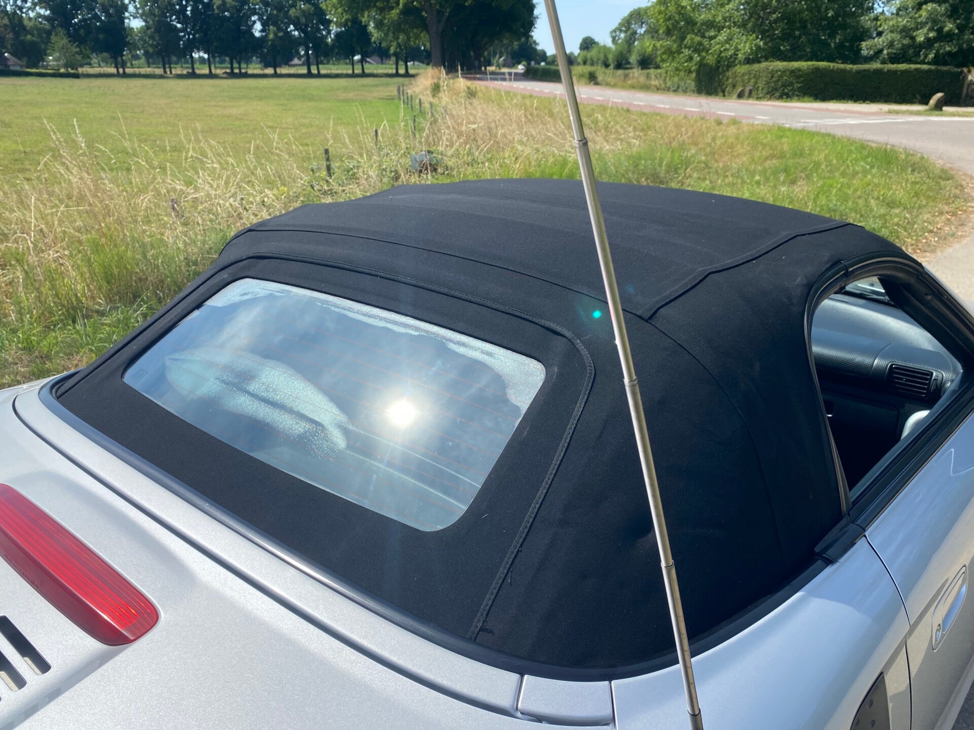 Sportieve Toyota MR2 te koop in het zilvergrijs uit het jaar 2000 met een zwart stoffen interieur.