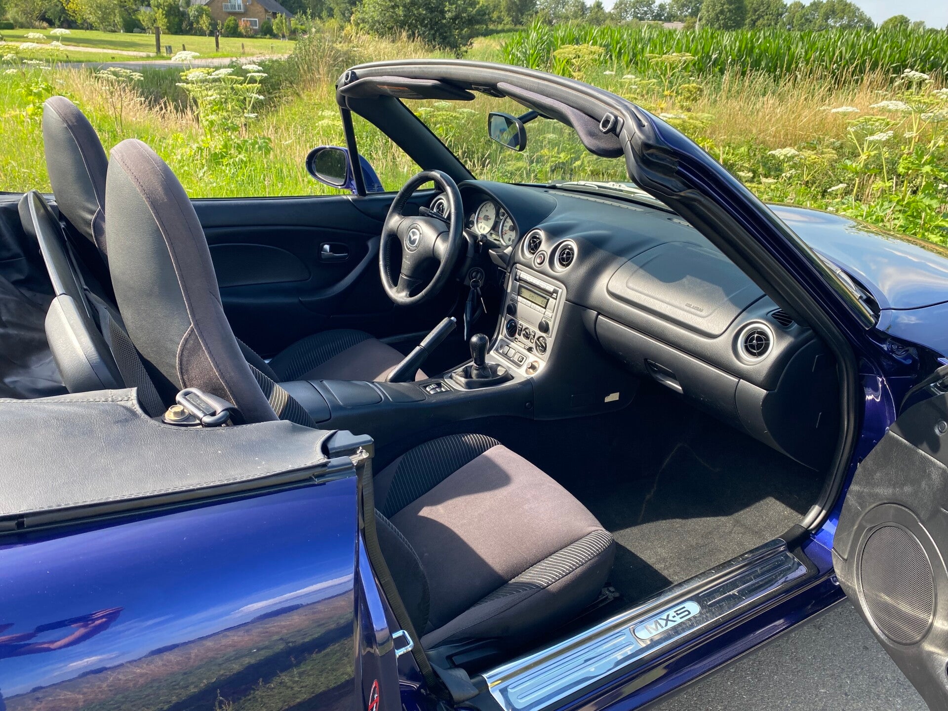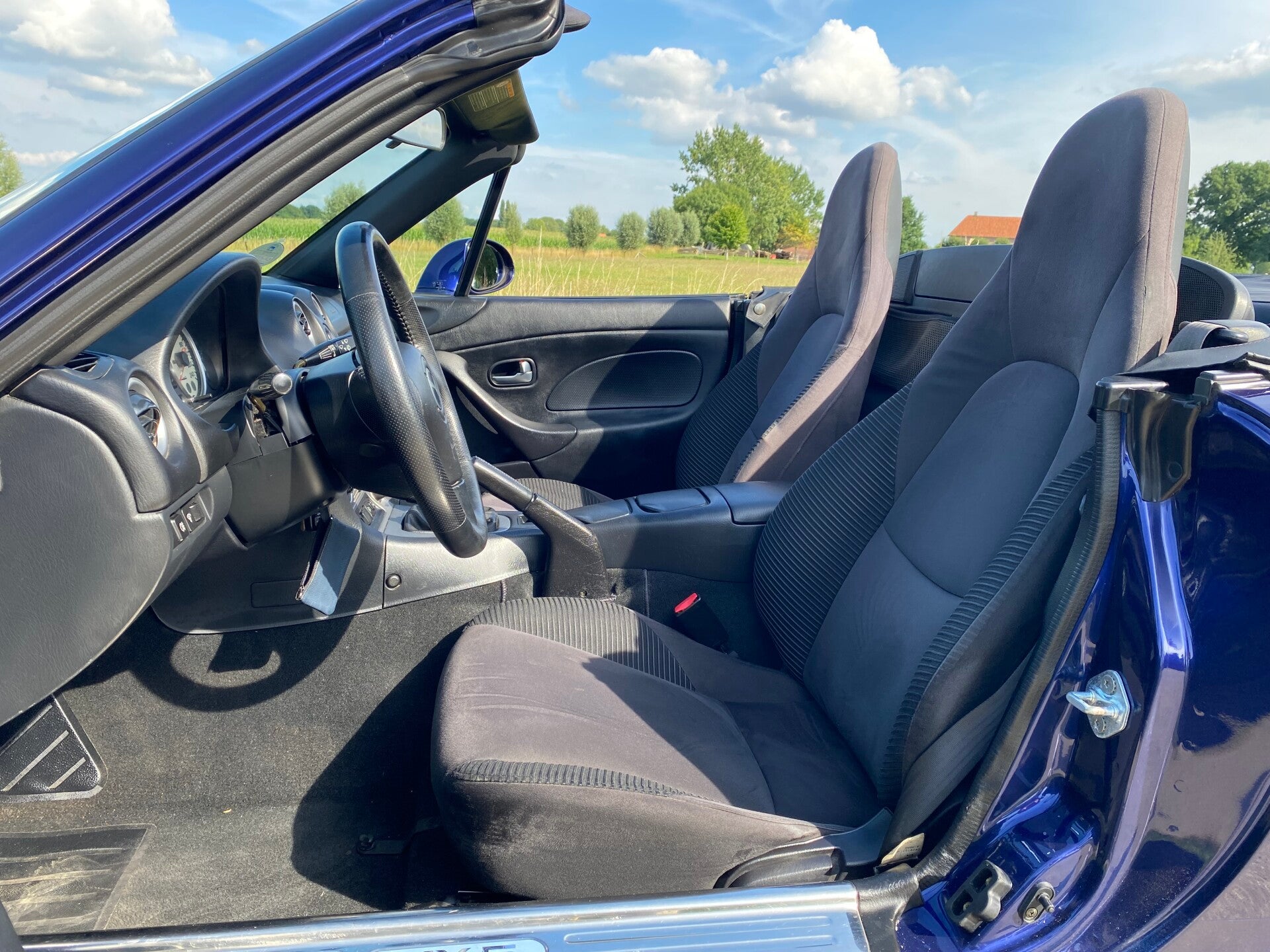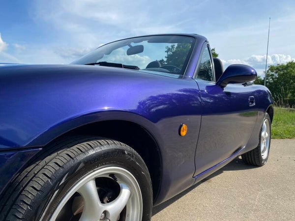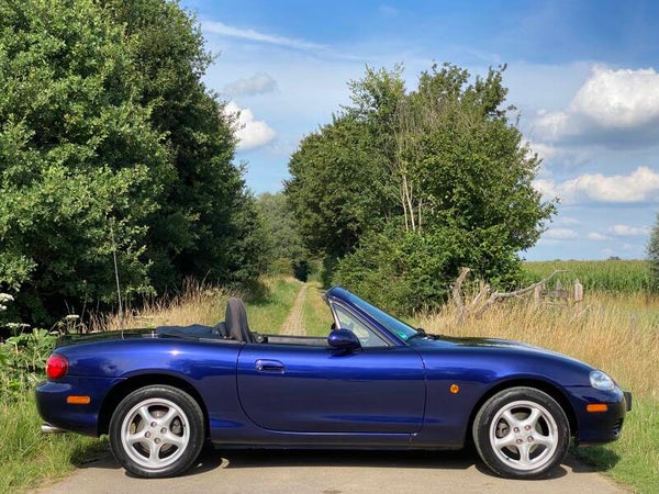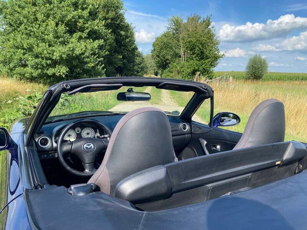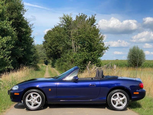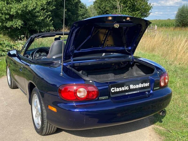 Een uniek mooie Mazda MX5 NB facelift 1.6 te koop. In 1997 kwam de tweede generatie (NB) van de best verkochte roadster ter wereld uit. In 2001 kwam daar de faceliftversie van op de markt, de zogenaamde NBFL. Deze uitvoering is gebouwd tot en met 2005 waarna de NC kwam. Dit exemplaar is uitgevoerd in de bijzondere kleur ''Strato Blue'' met een zwart stoffen interieur.