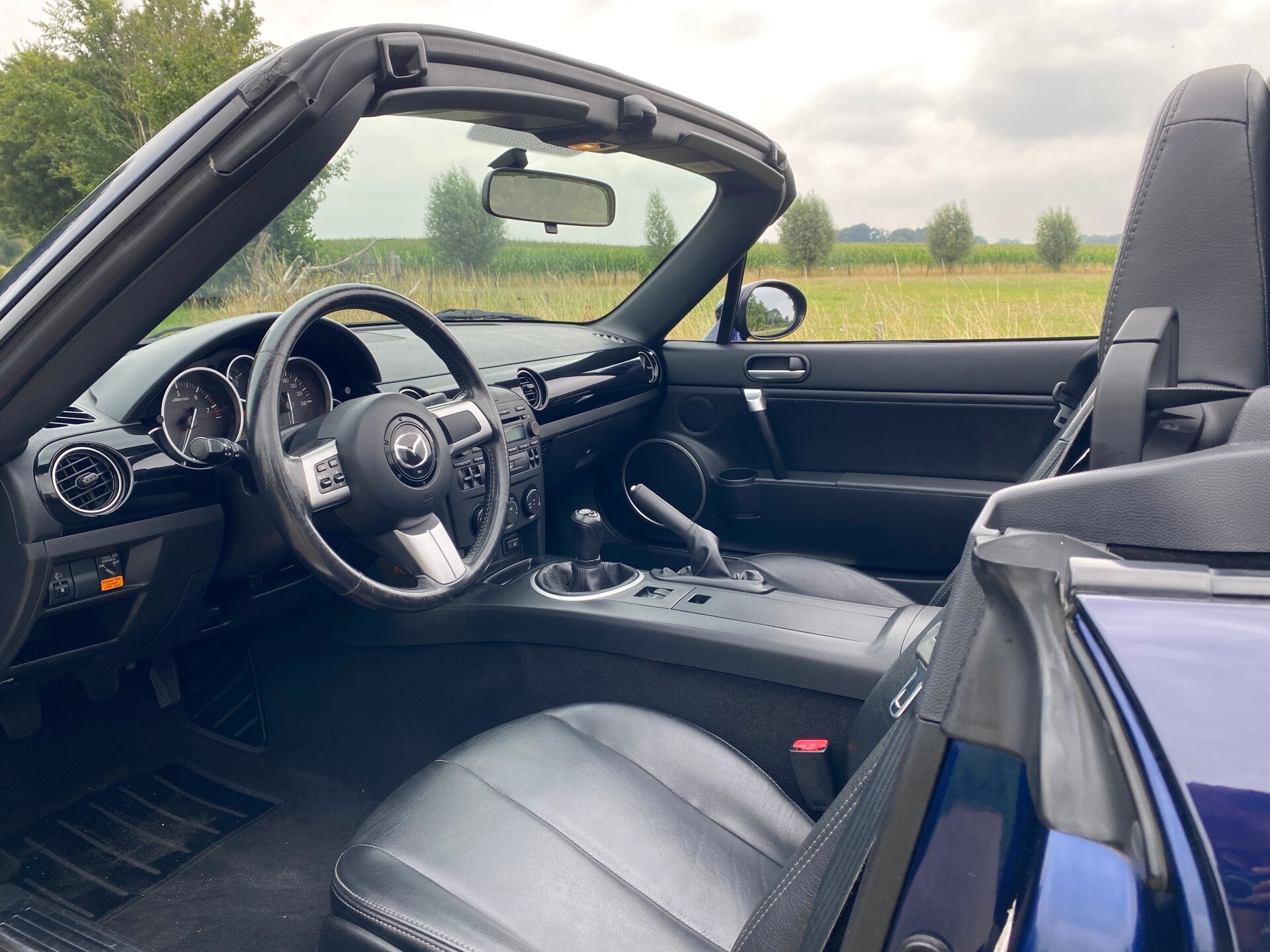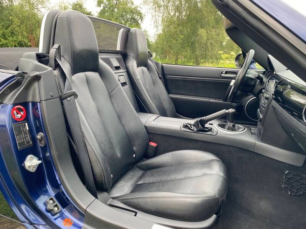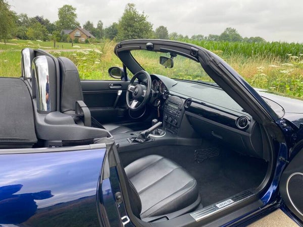 Deze donkerblauwe MX5 is op 11 februari in 2009 afgeleverd aan zijn eerste Belgische eigenaar door Mazda dealer ''Klontz Auto S.A.'' te Seraing in Belgie. De auto is luxe uitgevoerd met onder andere climate control, lederen stoelen met stoelverwarming en een Bose audio systeem. In Belgie is de auto altijd netjes dealer onderhouden geweest en dat valt de auto af te zien. Wij hebben deze mooie MX5 vanuit Belgie naar Nederland gehaald.
