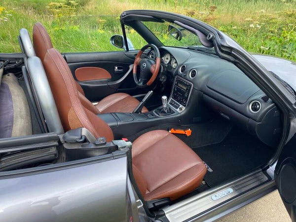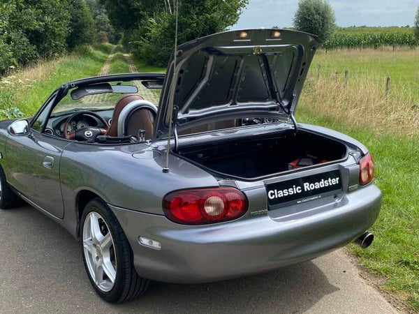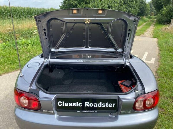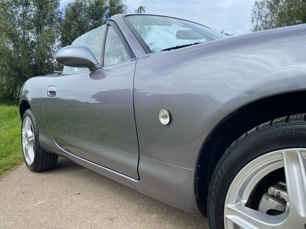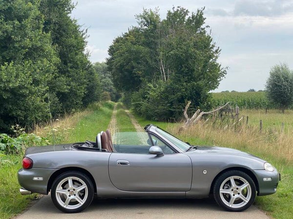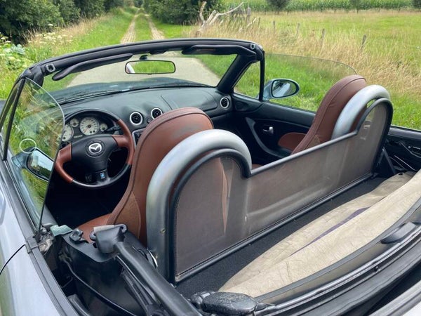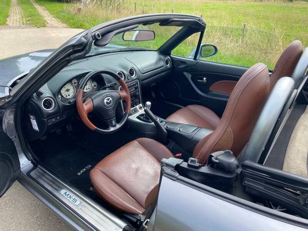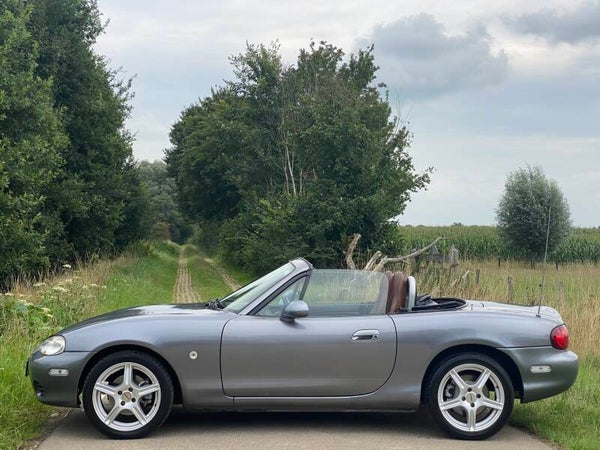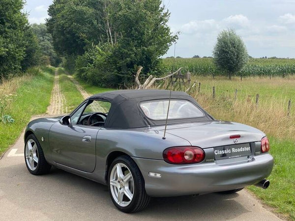 Een leuke Mazda MX5 NBFL 1.8 te koop. In 2001 kwam de facelift (FL) van de tweede generatie (NB) van de best verkochte roadster ter wereld. Deze Mazda MX5 is een Phoenix uitvoering. De auto is voorzien van de prachtige kleur ''Titanium Grey'' metallic met een bruin lederen interieur met stoelverwarming. Dit exemplaar is uitgevoerd met de 1.8 SVT motor met 146PK.