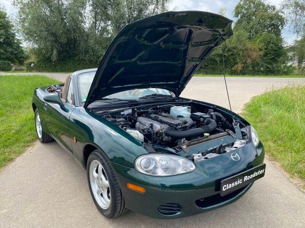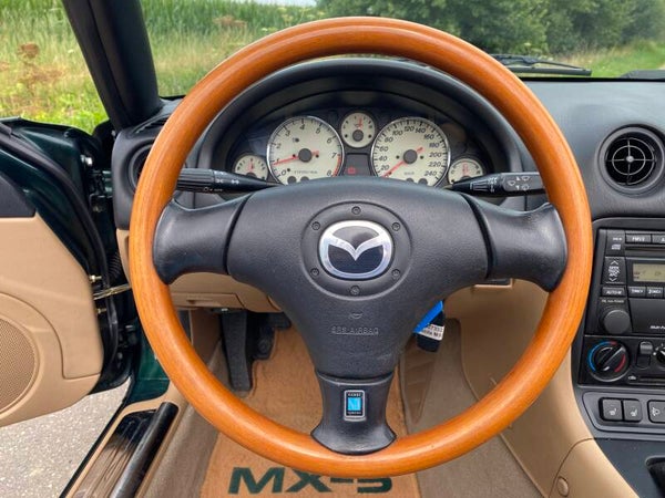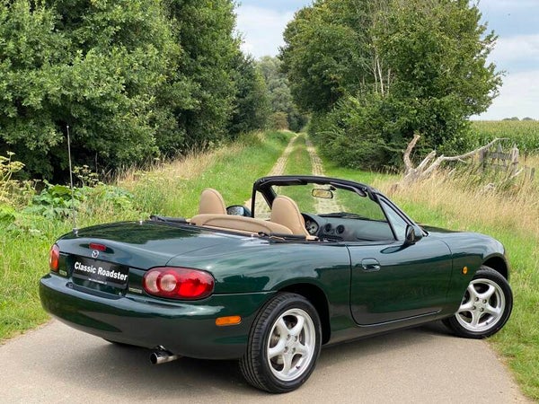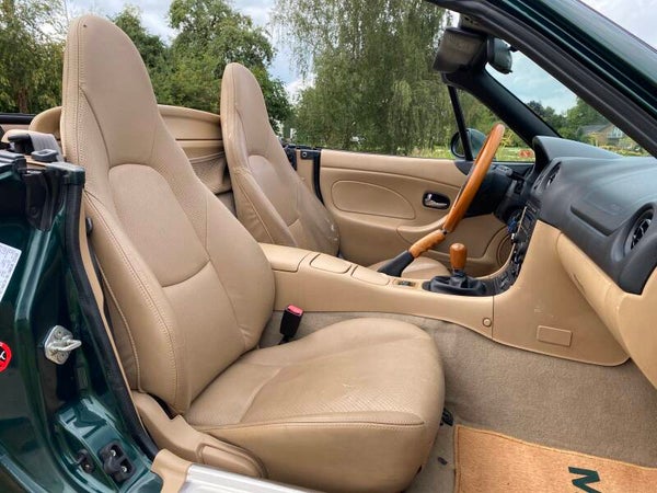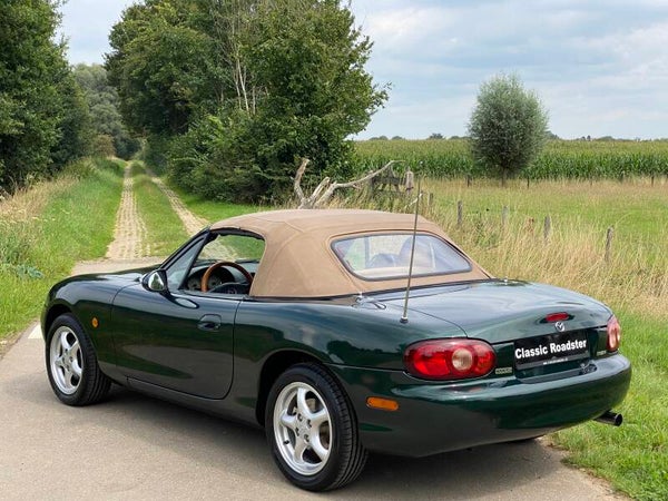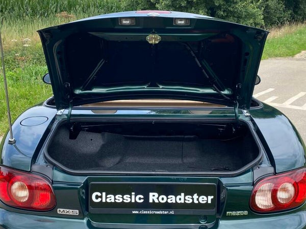 Een klassieke uitvoering van de bekende Mazda MX5 die in een zeer nette staat verkeert! De Mazda MX5 NBFL Memories edition is de opvolger van de Mazda MX5 NB Miracle. Ook bij de Memories uitvoering springt dat prachtig contrasterende interieur met notenhouten accenten er weer uit. De combintie van de donkergroene lak, het lederen beige interieur en de notenhouten Nardi details (stuur, middenconsole, versnellingspook en handrem) maken hem een lust voor het oog!