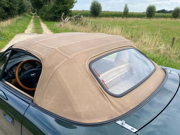 De Mazda verkeert in een nette staat. Het cabriodak is een beige exemplaar met glazen achterruit en ziet er netjes uit. De bekende roestproblemen aan de dorpel zijn in het verleden vakkundig aangepakt. Wij hebben de auto voorzien van 4 nieuwe banden, een nieuwe apk, uitvoerige technische controle en een poetsbeurt.