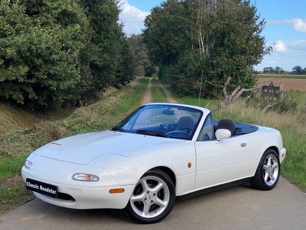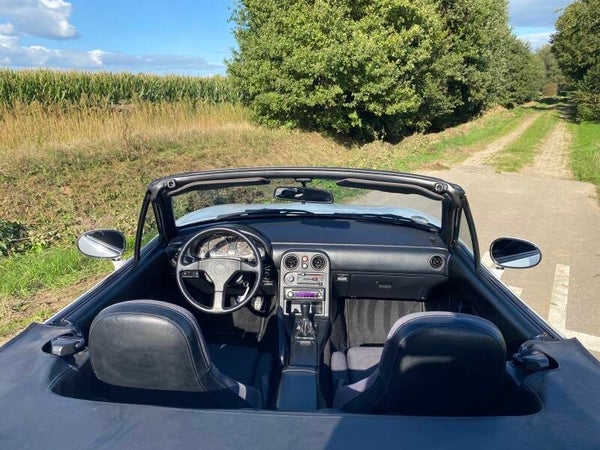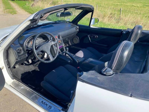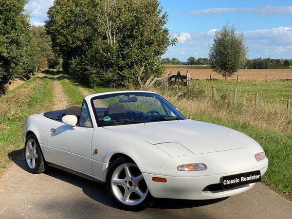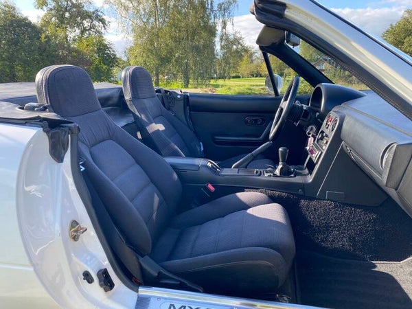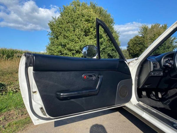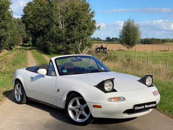 Een mooie, klassieke Mazda MX5 NA 1.6 te koop. In 1989 begon de productie van de best verkochte roadster ter wereld. Deze auto is uitgevoerd in het Crystal White met een zwart stoffen interieur en een zwart PVC/Vinyl cabriodak.