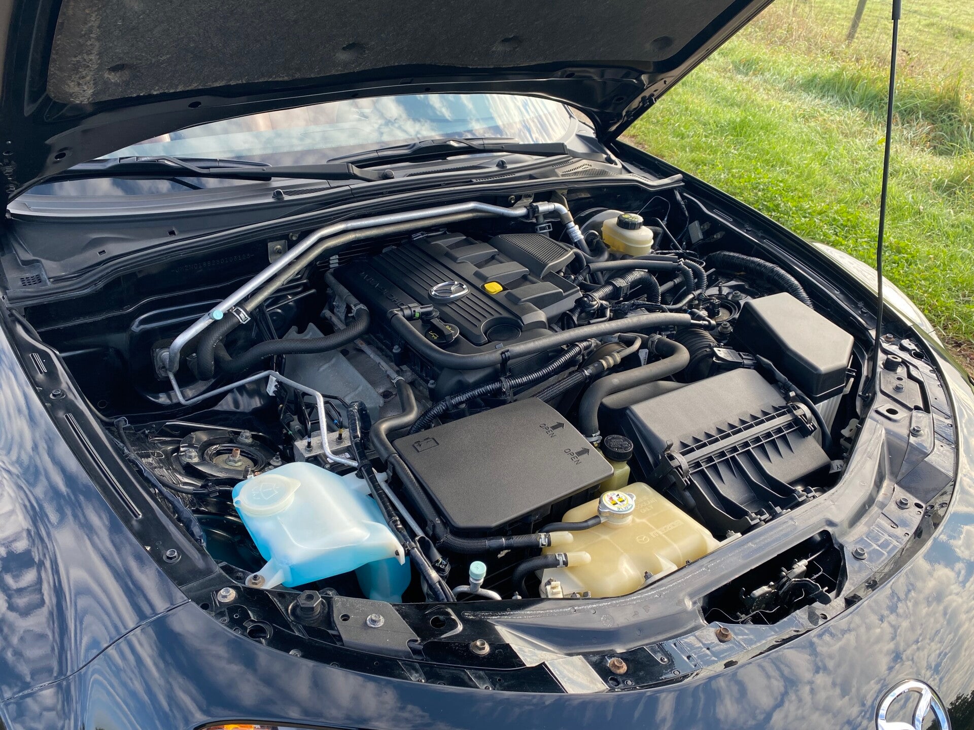 Wij hebben deze Mazda MX5 NC voorzien van een onderhoudsbeurt, technische inspectie en een poetsbeurt. De MX5 verkeert in een mooie staat voor zijn leeftijd en is een genot om mee te rijden. Het stoffen cabriodak is wat sleets maar functioneerd goed.