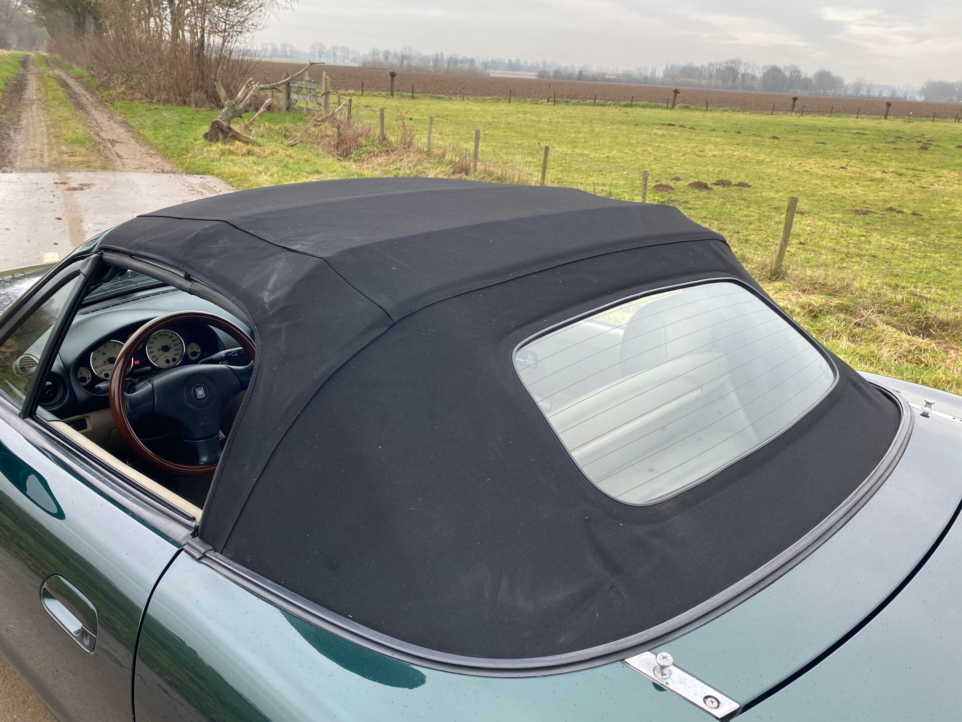 Wij hebben de auto voorzien van een grondige poetsbeurt, nieuwe APK en een onderhoudsbeurt. De cabriokap is een zwart stoffen exemplaar en verkeert in een nette staat.