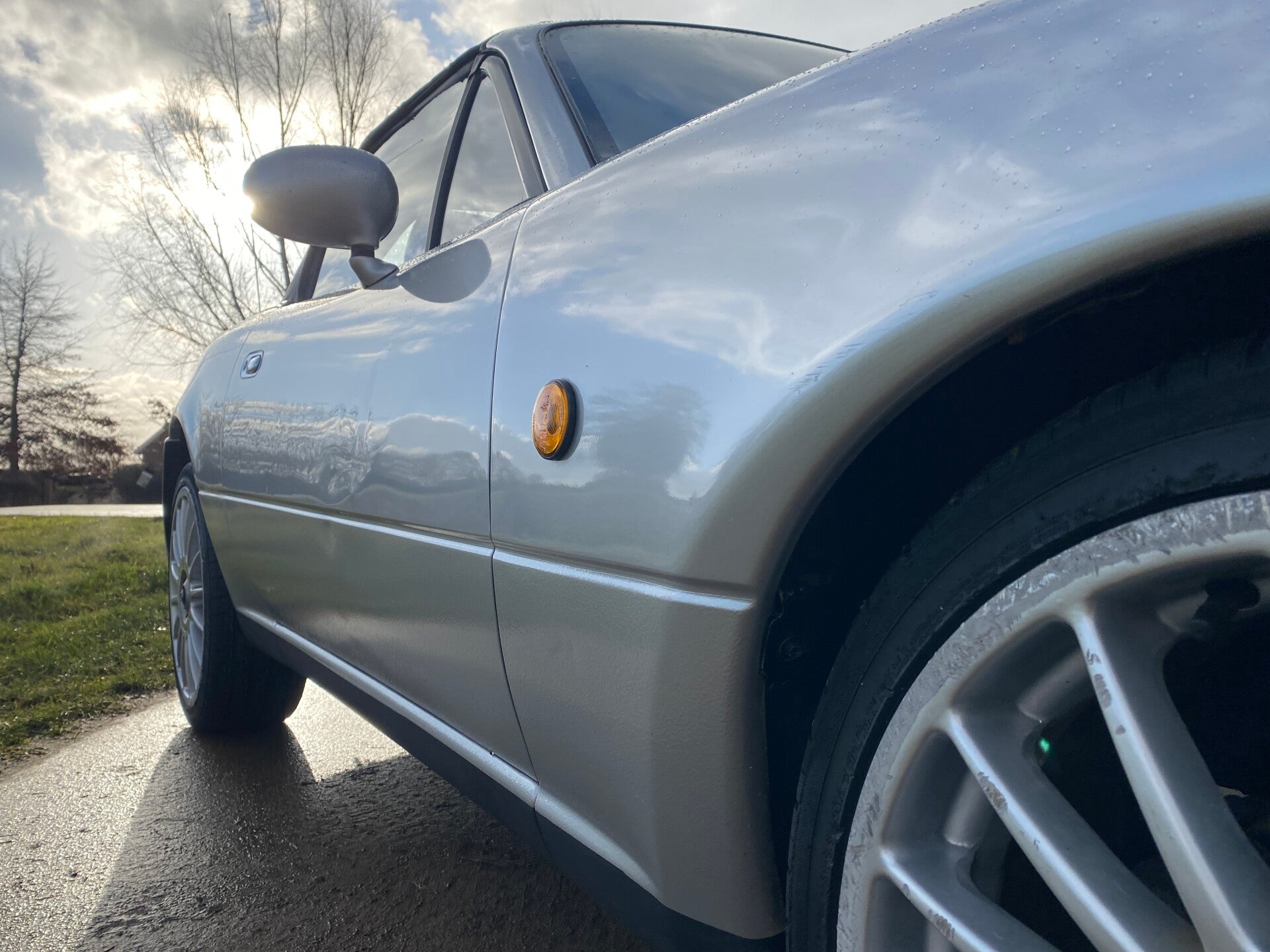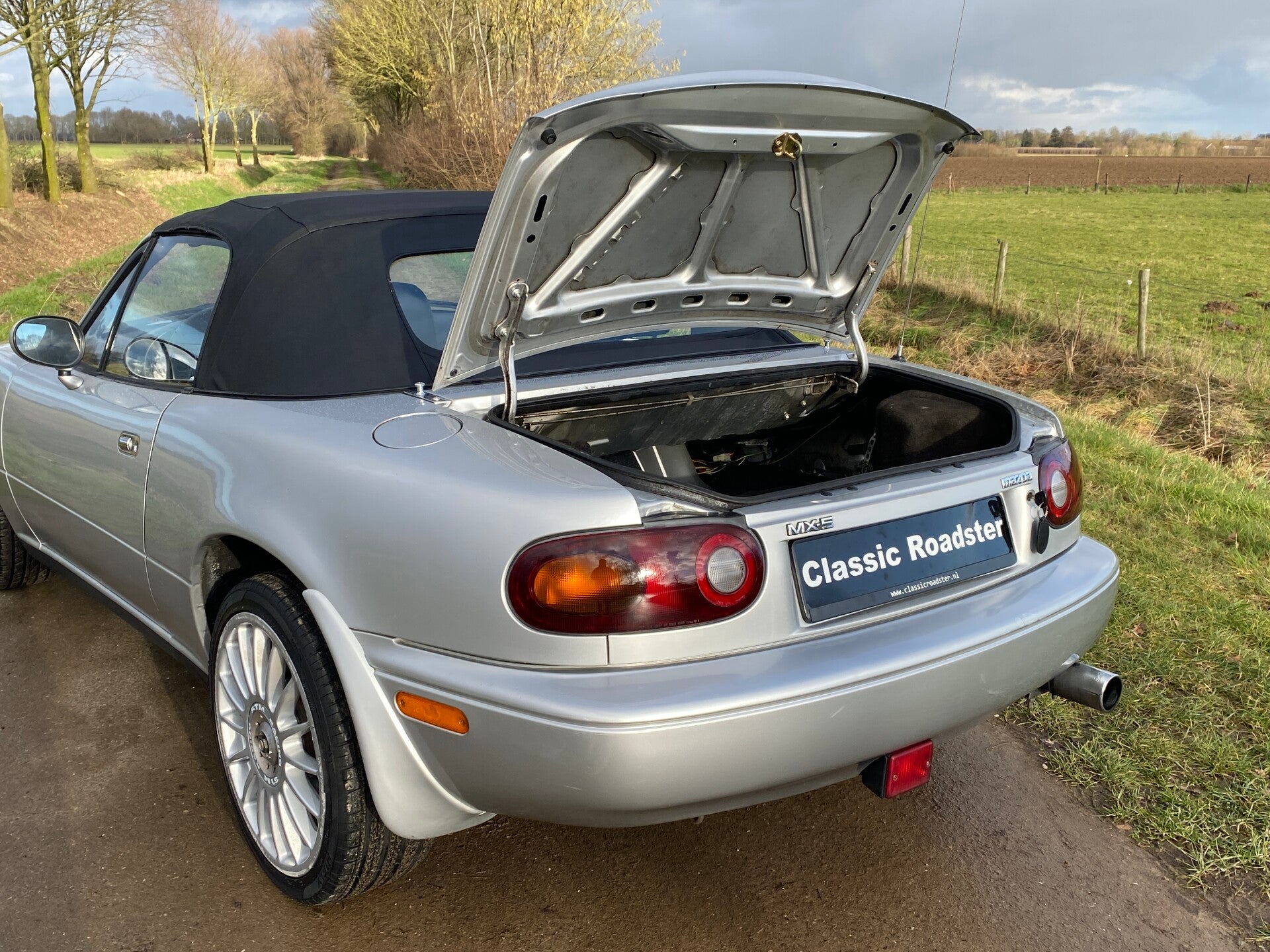 De MX5 verkeert in redelijke staat voor zijn leeftijd. Op wat optische plekjes na is de koets fris en hard en ziet de auto er leuk uit. Wij hebben de auto laten voorzien van een onderhoudsbeurt en een grondige polijstbehandeling. Er zullen best nog wat verbeterpunten aan de auto te vinden zijn maar de basis is goed en kloppend.