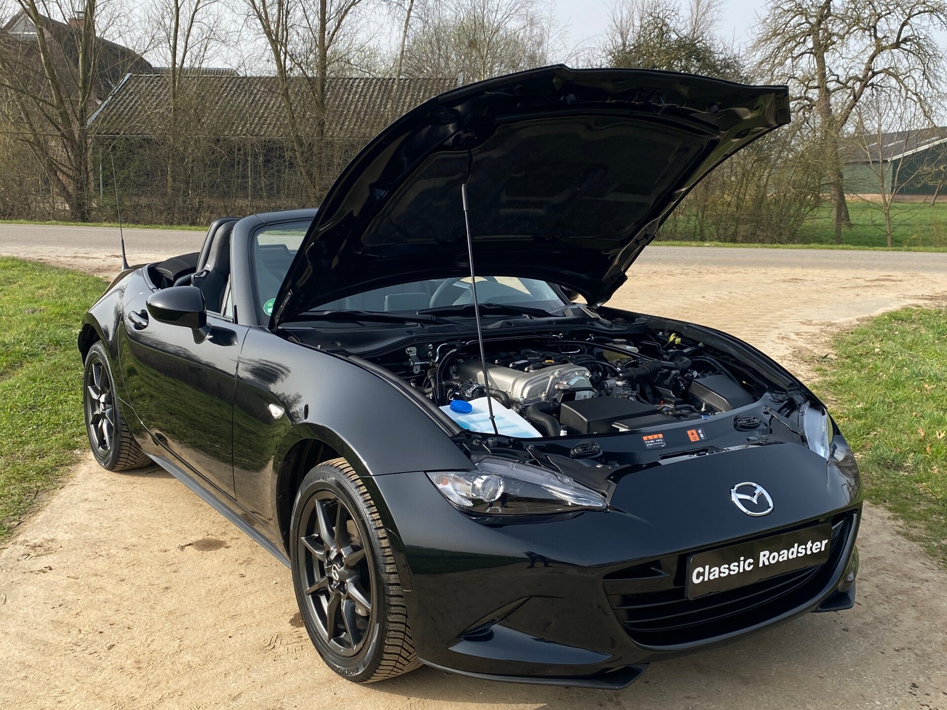 Deze Mazda MX5 ND in de kleur ''Jet Black'' is op 24 juni 2016 afgeleverd door Mazda dealer ''Autohaus Henn GmbH'' te Weil am Rhein in Duitsland. De Mazda is altijd netjes dealeronderhouden en dat is geregistreerd in het digitale onderhoudsregister bij Mazda.