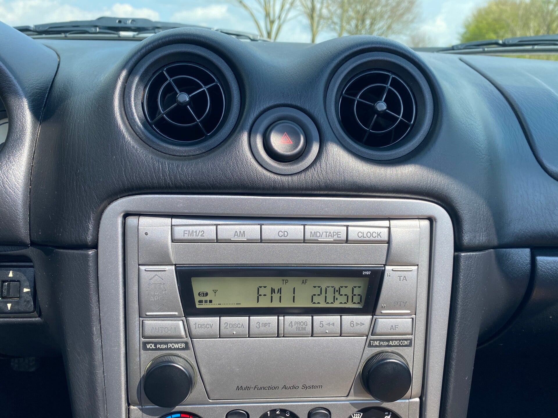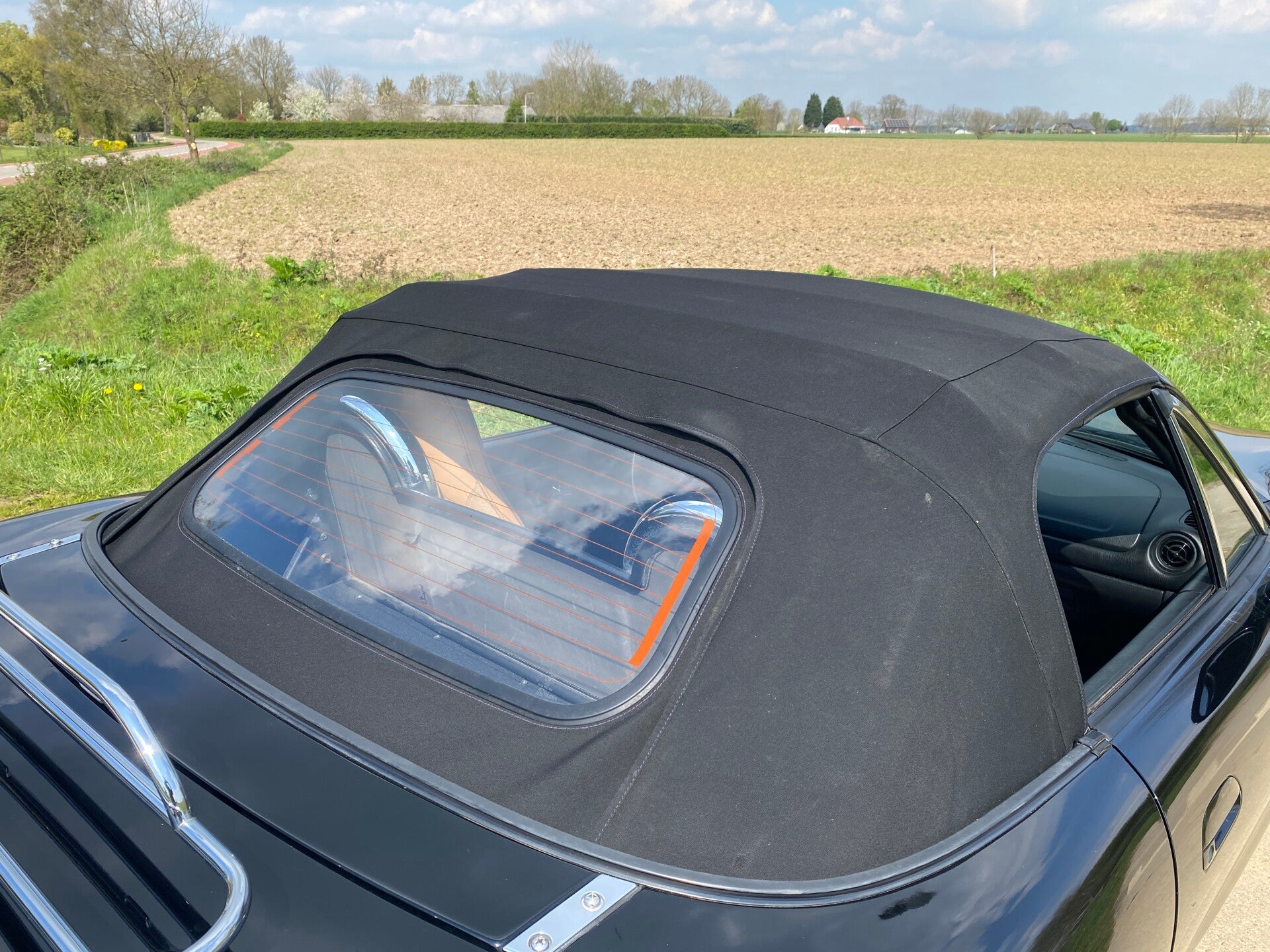 De Mazda verkeert in een nette staat zonder overmatige slijtage sporen en is technisch in een frisse staat. Het cabriodak is een zwart stoffen exemplaar met glazen achterruit en ziet er netjes uit.