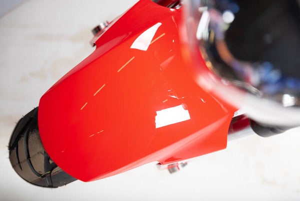 De aluminium details, die zelfs op de remschijf, handgrepen en velgrand zijn terug te vinden, benadrukken het exclusieve racing karakter.