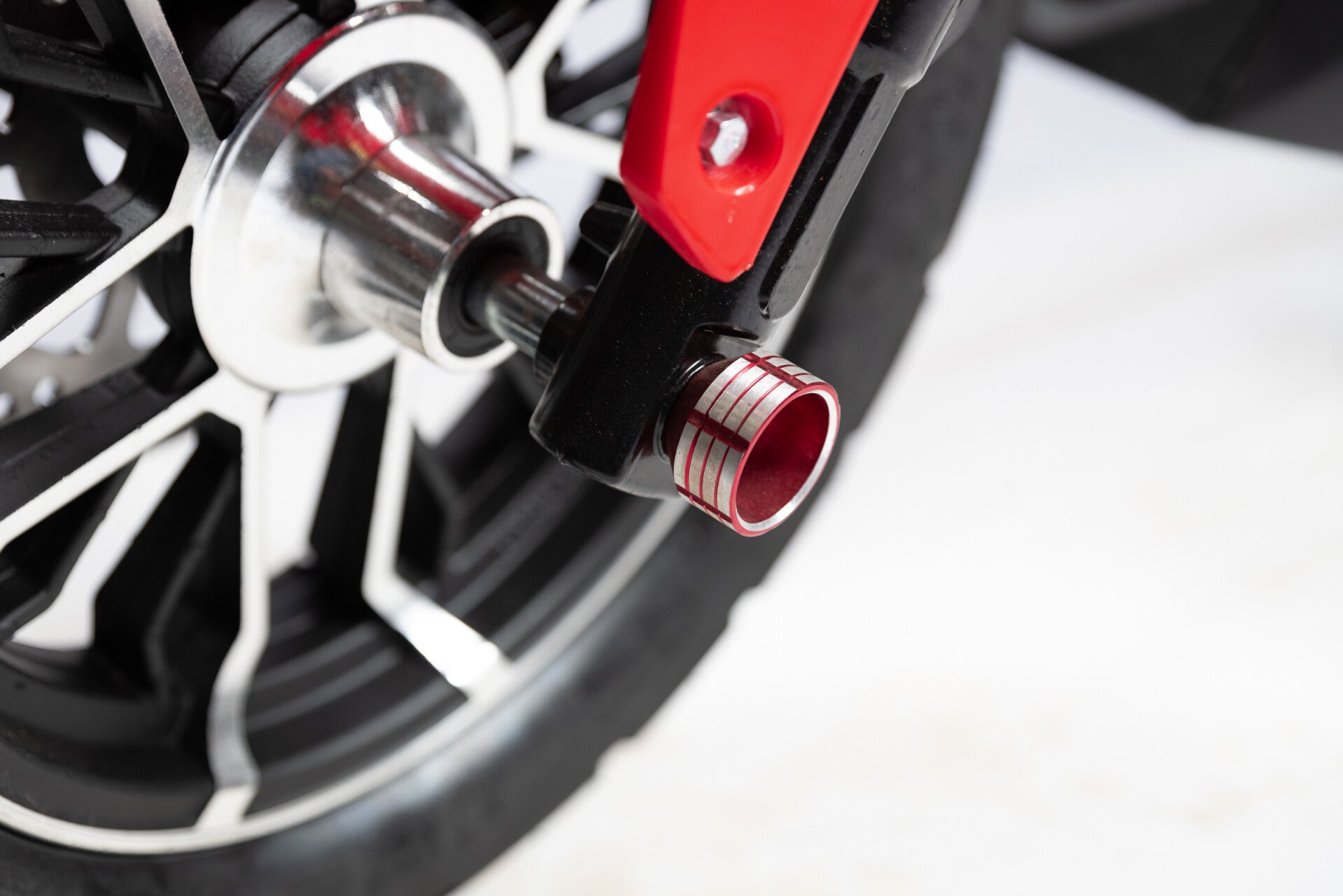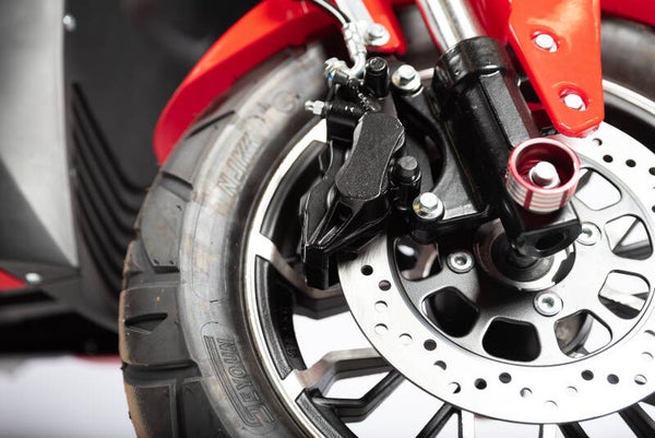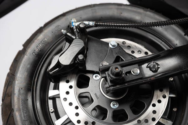 Wat direct opvalt aan de Drago is zijn sportieve en robuuste karakter. De elektrische Drago steelt overal de show! Zijn grote zwarte sportvelgen zorgen voor een heel volwassen indruk. De Drago heeft 17 inch grote sportvelgen. De banden zijn eveneens van een volwassen afmeting, en breder dan bij de gemiddelde brommer. Dit alles bij elkaar zorgt meer voor een motor look dan een brommer look.