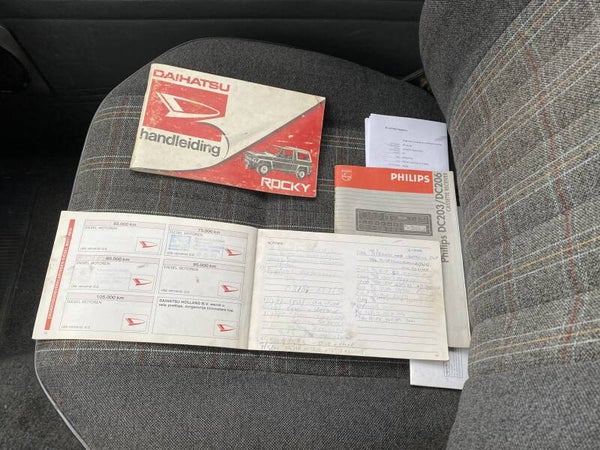 In 1986 is deze Daihatsu Rocky aan zijn eerste Nederlandse eigenaar afgeleverd. Deze man heeft de auto tot 1997 in bezit gehad. Via een tussenhandelaar belandde de Rocky in 1997 bij zijn 2de en laatste eigenaar. De vorige eigenaar heeft de auto 23 jaar gebruikt op de boerderij als rijdend werkpaard. De auto is al die tijd qua onderhoud goed bijgehouden en de bodem is hard. De carrosserie heeft zo zijn plekken gekregen in de loop der tijd.