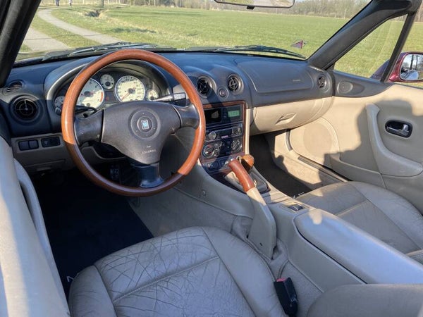 De Mazda MX5 Miracle Edition was het toppunt van luxe voor de MX5 in het jaar 2000 en begin 2001. De combinatie van de donkerrode metallic lak, het lederen beige interieur en de notenhouten Nardi details (stuur, middenconsole, versnellingspook en handrem) maken hem een lust voor het oog! Het mooie aan deze Miracle is de potente 1.8 motor met 140 pk en 6 versnellingen. Deze motor maakt de auto een stuk sportiever vergeleken met de standaard 1.6.