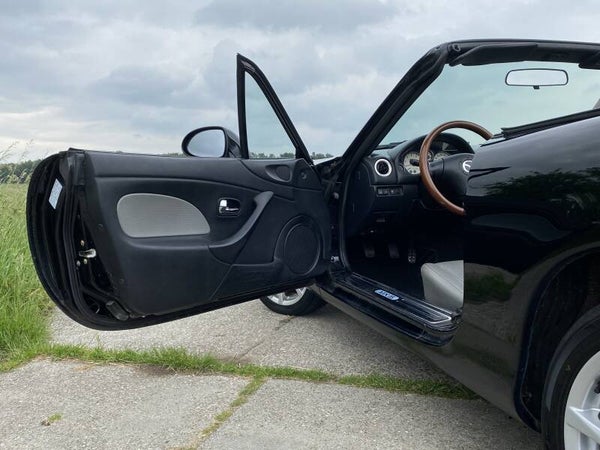 Een mooie Mazda MX5 NBFL 1.6 te koop. In 2001 kwam de facelift (FL) van de tweede generatie (NB) van de best verkochte roadster ter wereld. Deze MX5 is in mei 2003 voor het eerst geregistreerd in Duitsland en is in 2016 naar Nederland gehaald! De auto is uitgevoerd in een zwarte lak met lichtgrijs lederen stoelen. Dit in combinatie met de Nardi houtaccenten maakt het tot een mooie luxe uitvoering!