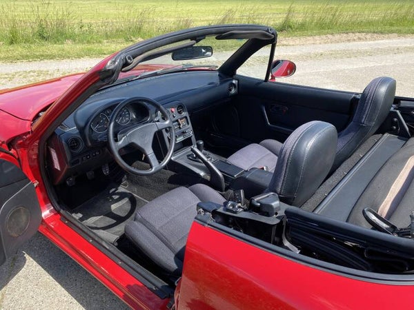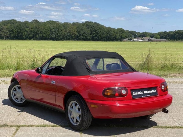 Een mooie, klassieke oer Mazda MX5 NA 1.6 te koop. In 1989 begon de productie van de best verkochte roadster ter wereld. Deze Mazda MX5 is in augustus 1993 voor het eerst geregistreerd in Duitsland. In het jaar 2000 is de auto naar Nederland gekomen. In Nederland heeft de auto slechts 2 eigenaren gehad die de auto puur voor de hobby hebben gebruikt. De auto is uitgevoerd in het Classic Red (de MX5 kleur!) met een zwart stoffen interieur en een zwart stoffen cabriodak.